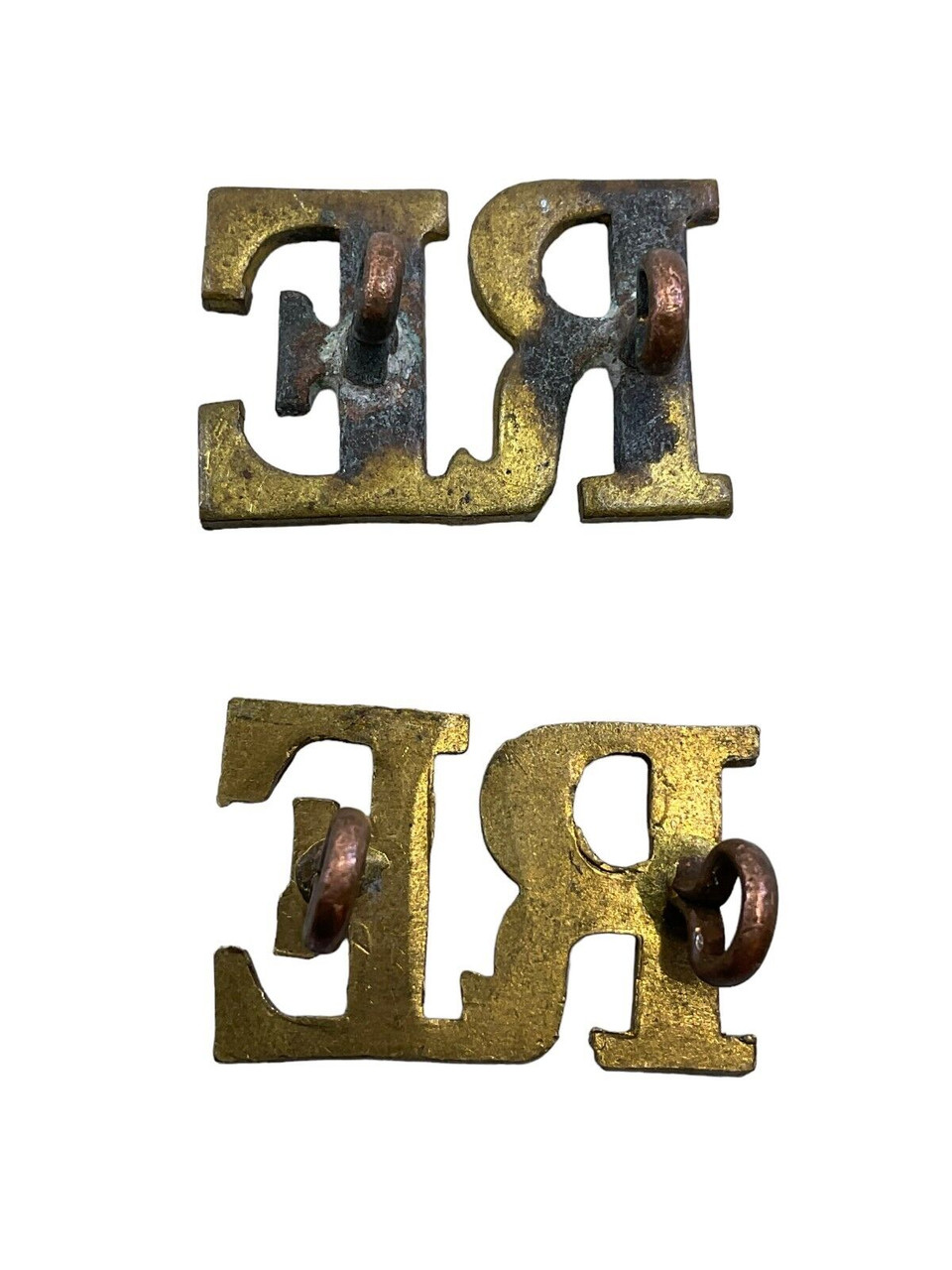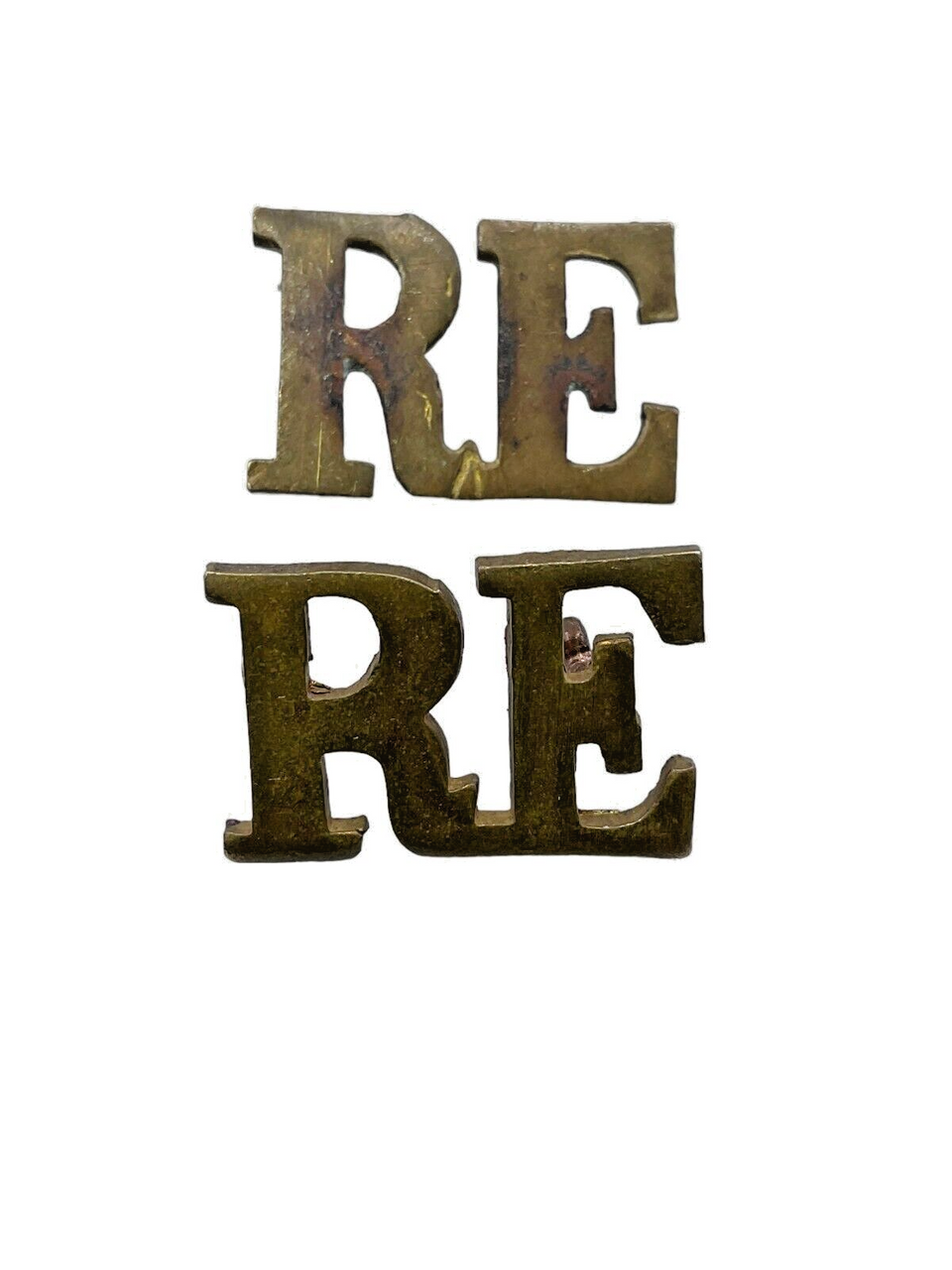 WW2 British Royal Engineers RE Brass Shoulder Titles Insignia Pair