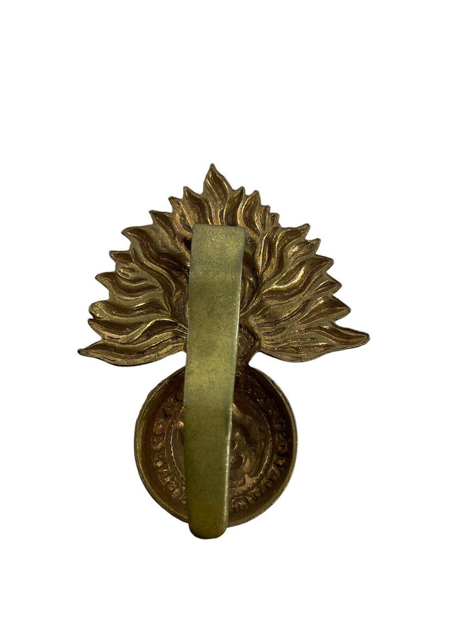 WW2 British Royal Fusiliers Cap Badge The ‘WW2 British Royal Fusiliers Cap Badge’ is a striking emblem that represents the storied history and distinguished service of the Royal Fusiliers during World War II. This meticulously crafted badge typically features the iconic flaming grenade, a symbol synonymous with the regiment, and often includes the Royal Cipher or the Fusiliers’ motto. Made from durable materials such as brass or bronze, the badge is designed with intricate detailing that highlights its historical significance. Worn by soldiers on their military headdress, it served not only as a mark of honor and allegiance but also as a piece of morale-boosting insignia. Collectors and historians highly prize these badges for their craftsmanship and the stories they encapsulate of bravery and duty. The WW2 British Royal Fusiliers Cap Badge is more than just a military artifact; it is a poignant reminder of the valor and dedication of the men who served under its banner during one of the most challenging periods in modern history.