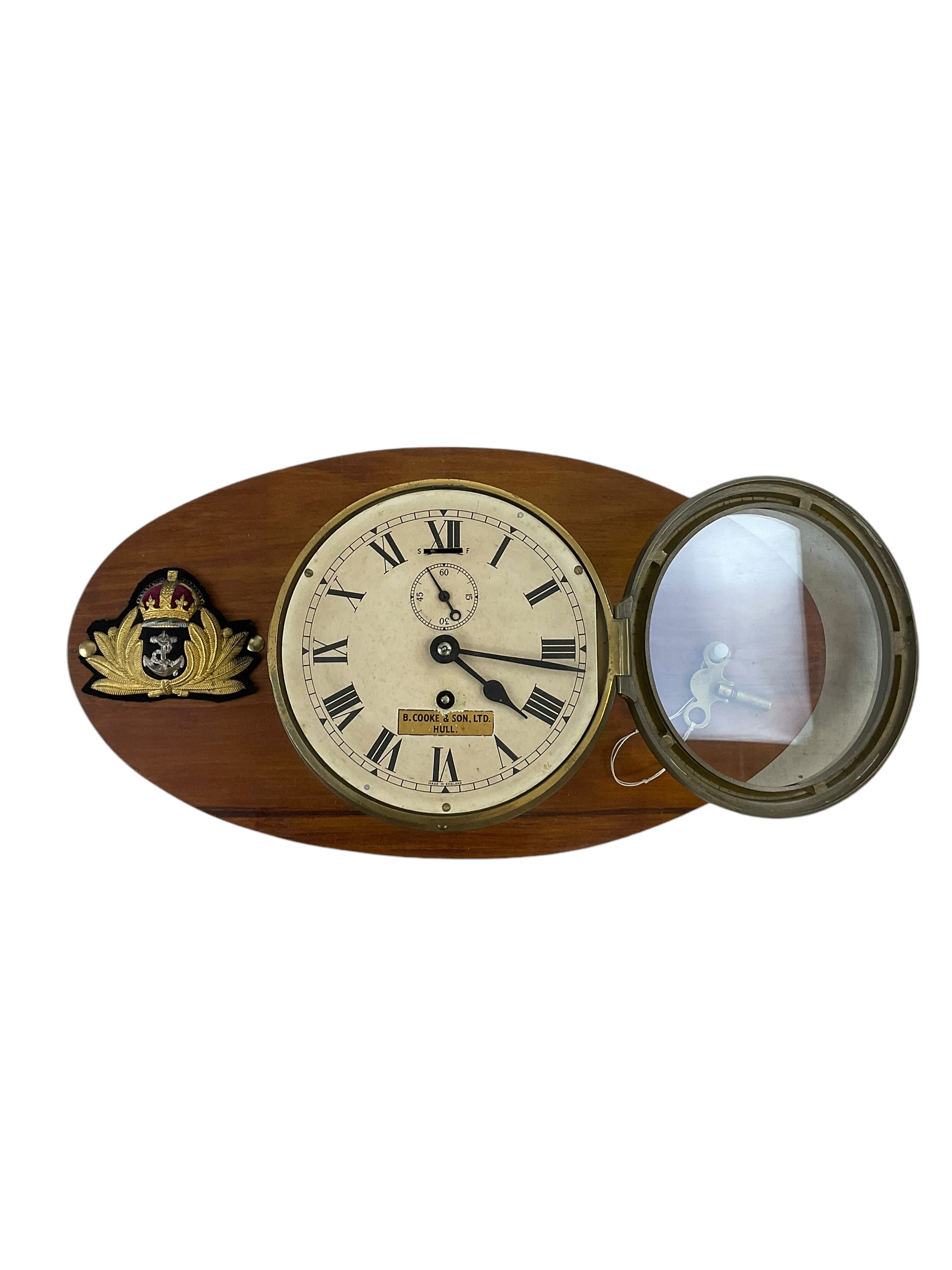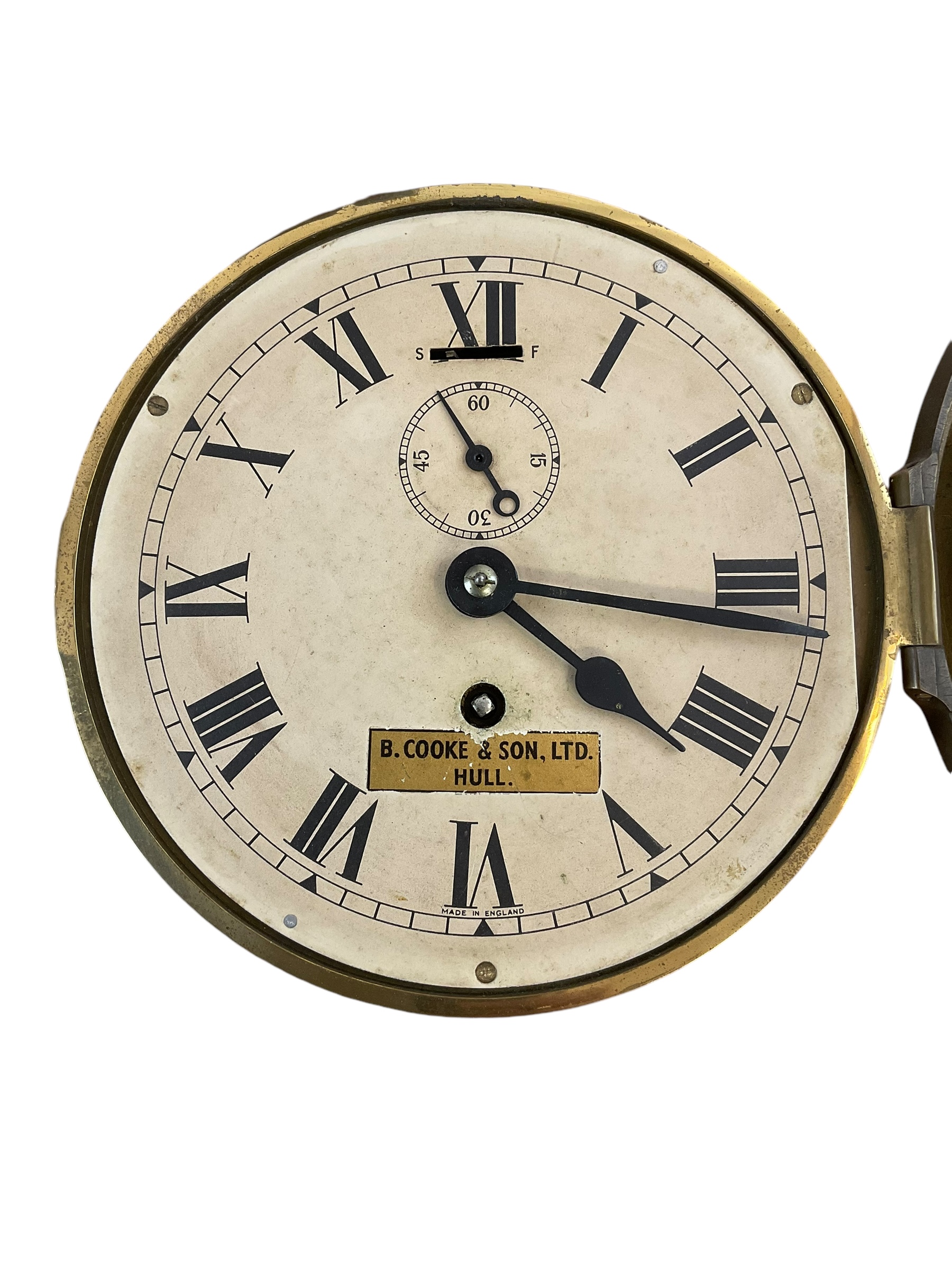 This item is a genuine, fully functional WW2 British Royal Navy (RN) Ship’s Clock. Produced during the tumultuous times of the Second World War, this clock holds a significant piece of naval history. It features a traditional porthole design made from solid brass, with a heavy, glass face cover that adds to its robust and durable nature. The clock mechanism is in excellent working condition, keeping time accurately as it did during service. The face bears the Royal Navy’s insignia, marking its authenticity. The timepiece also displays signs of vintage wear and patina, adding to its historical charm. This clock offers a unique opportunity for history enthusiasts, maritime collectors, or anyone with an appreciation for timeless craftsmanship to own a piece of British naval heritage.