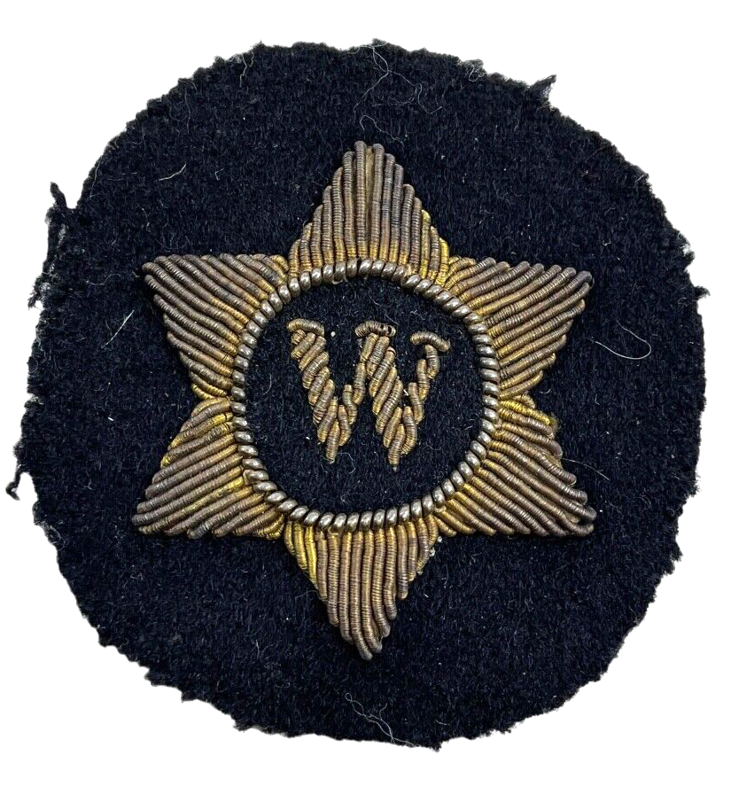 The WW2 British Royal Navy W Writer Bullion Sleeve Insignia Patch is a distinct and historically significant artifact from the Second World War. This intricate patch features the unique “W” designation, identifying the wearer as a Writer, a vital clerical and administrative role within the Royal Navy. Crafted with exquisite detail, the insignia showcases stunning gold and silver bullion threadwork, highlighting the prestige and importance of the position. Typically worn on the sleeve, this patch symbolizes the dedication and professionalism of those who maintained essential records, correspondence, and documentation for the Navy. Collectors and history enthusiasts will appreciate the craftsmanship and historical context of this delicate piece, offering a tangible connection to the brave men and women who served in the Royal Navy during one of the most challenging periods in modern history.