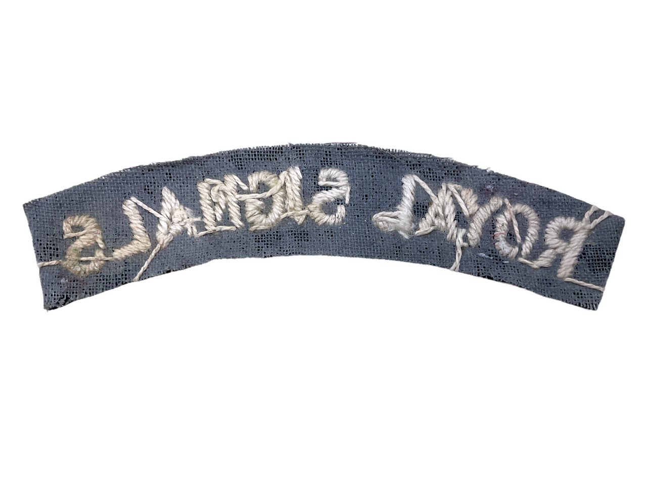 The WW2 British Royal Signals Embroidered Shoulder Title is a remarkable piece of military memorabilia from World War II. This intricately embroidered patch was proudly worn on the uniforms of soldiers serving in the Royal Corps of Signals, the branch of the British Army responsible for communications. The shoulder title features distinct lettering and design that highlight the corps’ prestigious role in maintaining critical communication lines during the war. Collectors and history enthusiasts will appreciate the craftsmanship and historical significance of this embroidered title, which symbolizes the dedication and bravery of the signalers who played a pivotal role in the Allied victory. Whether displayed as part of a larger collection or framed individually, this shoulder title offers a tangible connection to the rich heritage and valor of the British military during one of the most challenging periods in modern history.