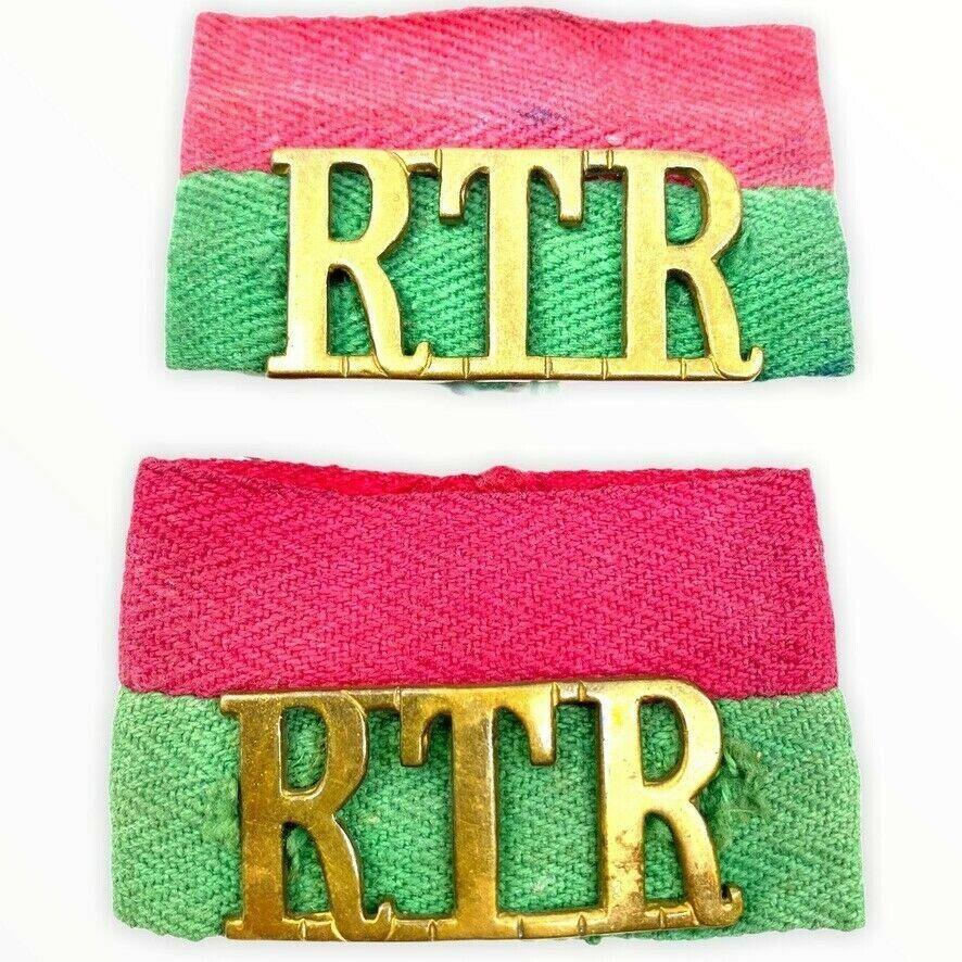 WW2 British Royal Tank Regiment RTR Shoulder Titles Slip On Pair