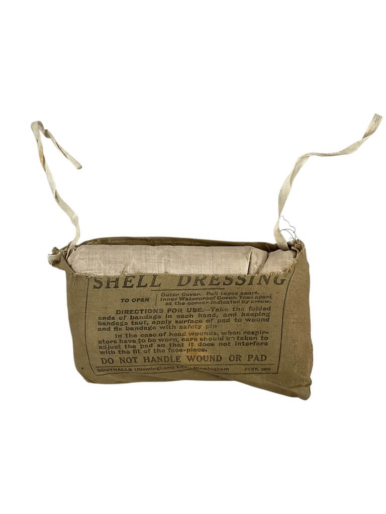 The ‘WW2 British Shell Dressing Large Dated 1942’ is a fascinating artifact from the tumultuous era of World War II. Manufactured in the United Kingdom during the height of the conflict, this item hails from a time when the nation was in the throes of a global struggle. The shell dressing, a vital part of a soldier’s kit, was used to treat wounds inflicted on the battlefield. Its large size indicates it was intended for serious injuries. The dressing bears the date 1942, a significant year during the war, making it a valuable collectible for historians and enthusiasts alike. This piece represents a tangible connection to the past, offering a glimpse into the harsh realities faced by soldiers during one of the most transformative periods in world history.