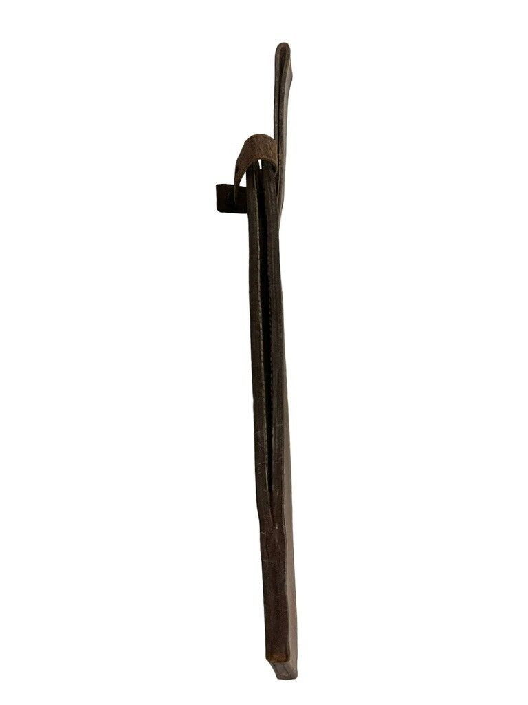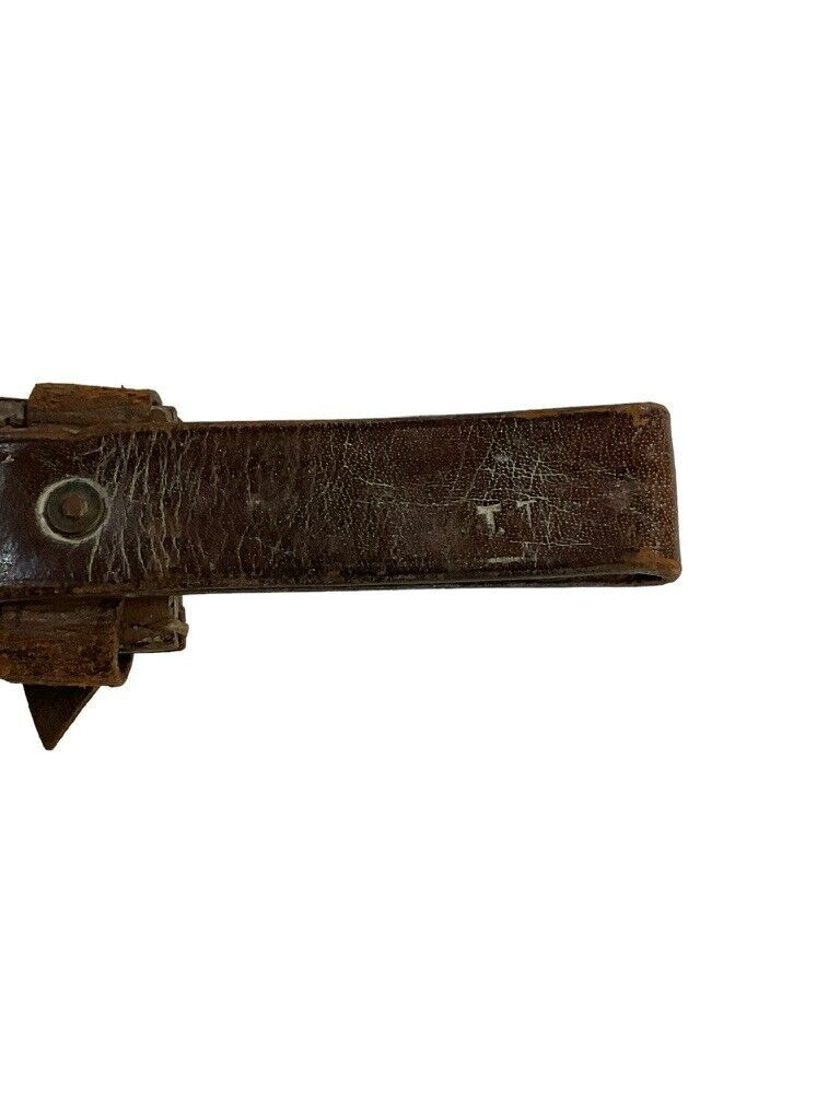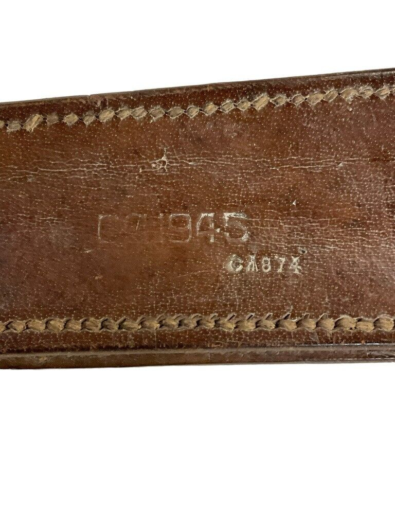 WW2 British Square Tipped Jungle Machete Leather Scabbard 1945 Dated This unique artifact is a genuine WW2 British Square Tipped Jungle Machete, complete with its original leather scabbard, dated 1945. Designed for the rigorous conditions of jungle warfare, this machete features a robust, square-tipped blade ideal for cutting through dense foliage. The leather scabbard, dated for historical accuracy, adds authenticity and offers protection for the blade. With its substantial weight and sturdy build, the machete is an excellent representation of British military craftsmanship from World War II. Whether you’re a collector of military memorabilia or a history enthusiast, this item provides a tangible connection to the soldiers’ experiences in the challenging jungle environments of the 1940s. Its impeccable condition and historical significance make it a cherished addition to any collection.