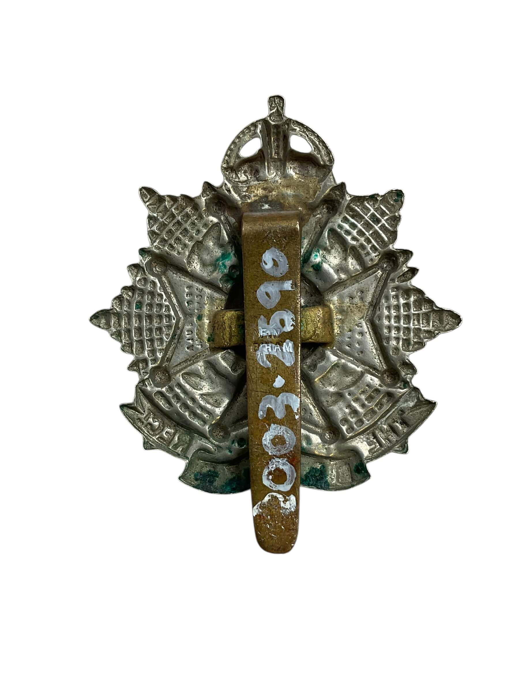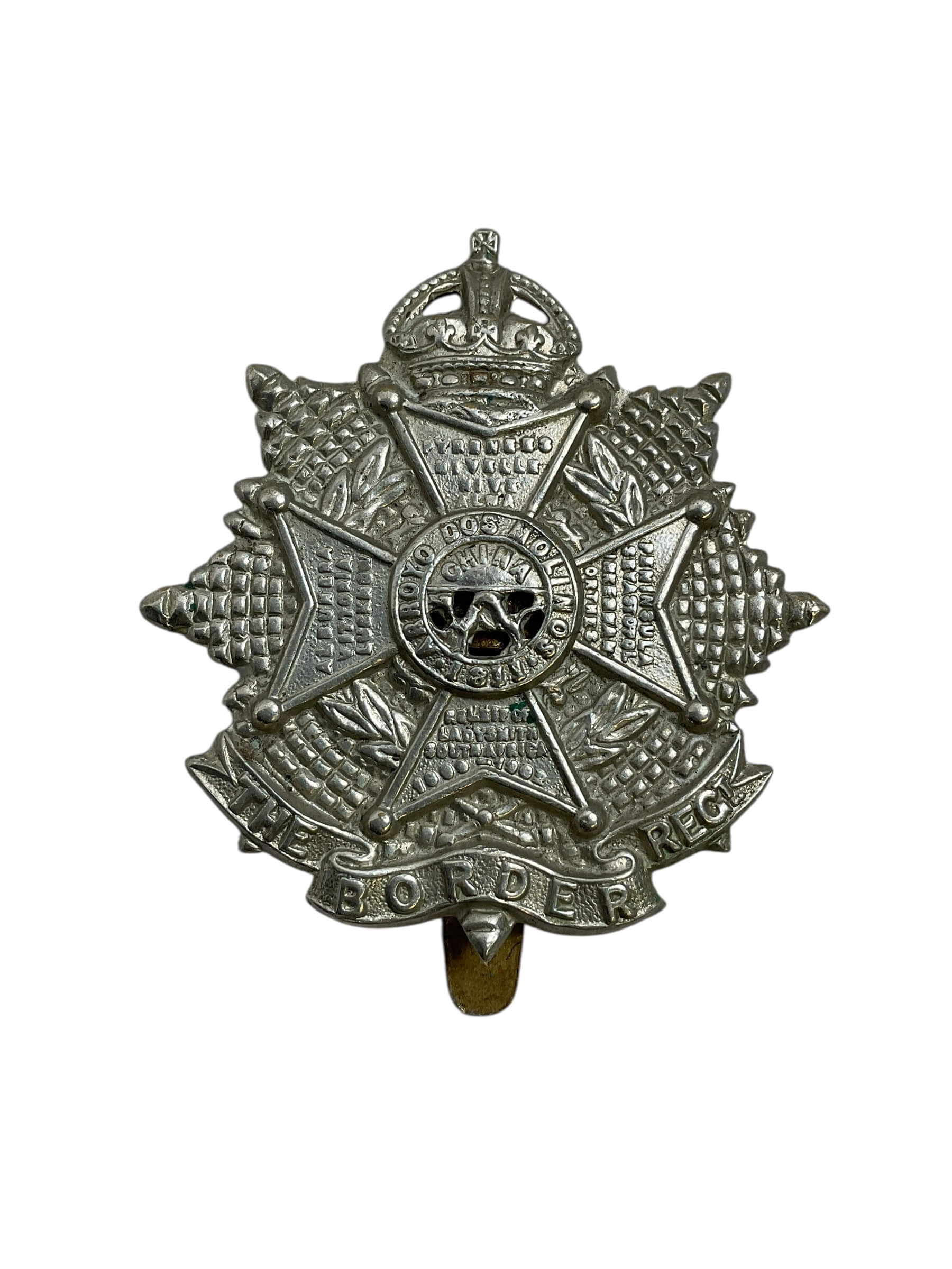 This piece is a genuine WW2 British The Border Regiment Cap Badge, a significant emblem of British military history. The badge is a key symbol of the Border Regiment, which was active during the Second World War and participated in numerous renowned battles. Crafted with exquisite precision, the badge features the emblematic design of the Border Regiment; the Cumberland’s ancient coat of arms with a roaring lion in the centre, surrounded by the traditional laurel wreath. Made from brass, the badge has a rich, golden hue that adds to its antique allure. Despite its age, it remains in good condition, with the intricate details still clearly identifiable. This cap badge is more than a piece of memorabilia but an artefact of great historical significance, perfect for history enthusiasts, military collectors, or anyone with a deep appreciation for World War 2 memorabilia.