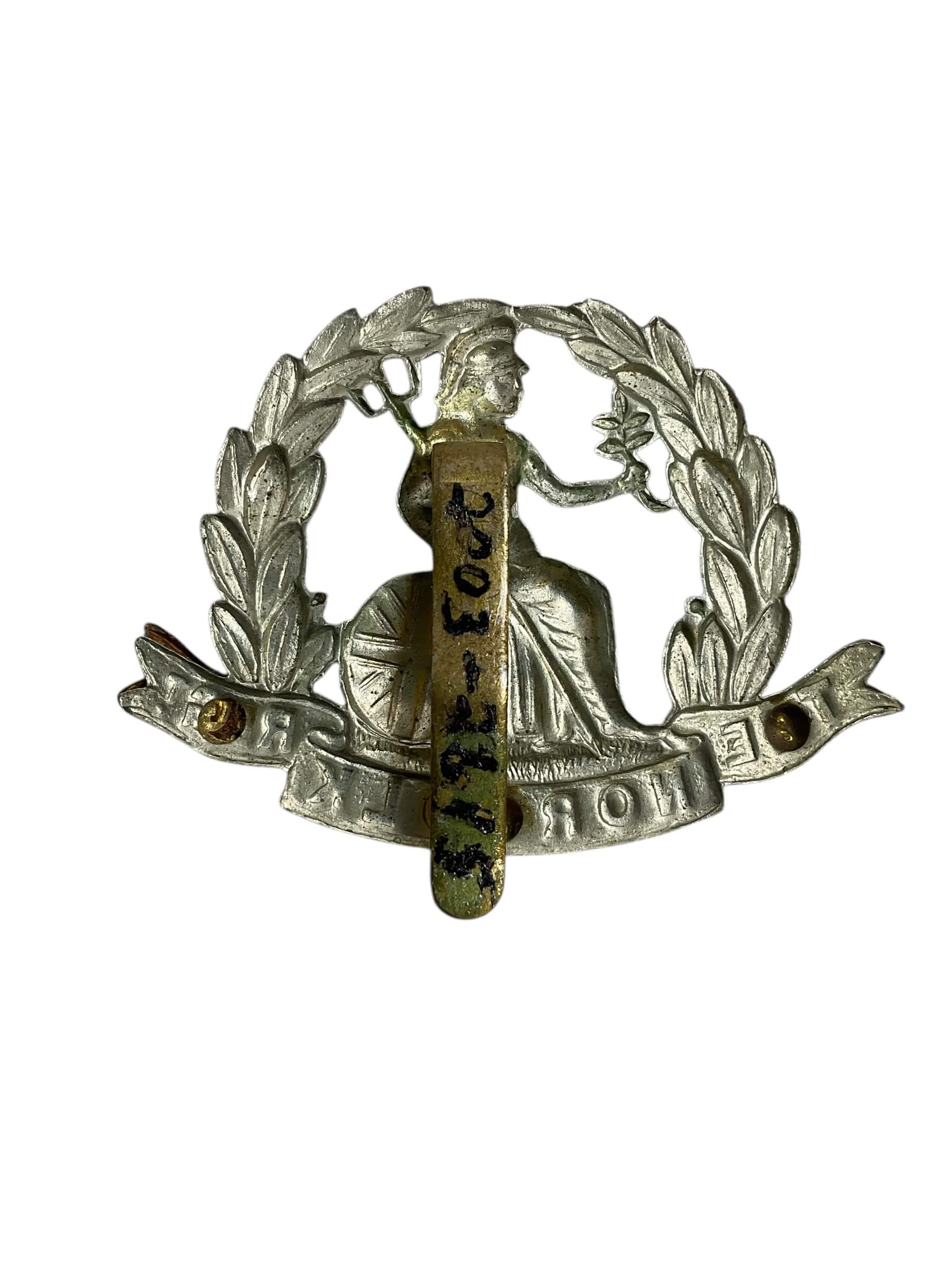 The ‘WW2 British The Norfolk Regiment Cap Badge’ is a remarkable piece of British military history, dating back to the World War II era. This cap badge served as a symbol of the prestigious Norfolk Regiment, a line infantry regiment of the British Army. The badge features the emblem of the Britannia, the female personification of the British Isles, a design that was unique to the Norfolk Regiment. It was crafted from brass or other durable metals and was worn on the peaked caps of the soldiers. This vintage item not only showcases intricate craftsmanship but also serves as a poignant reminder of the bravery and sacrifice of the regiment during the war. For military enthusiasts, historians, or collectors of war memorabilia, this WW2 British The Norfolk Regiment Cap Badge is a valuable and significant relic.