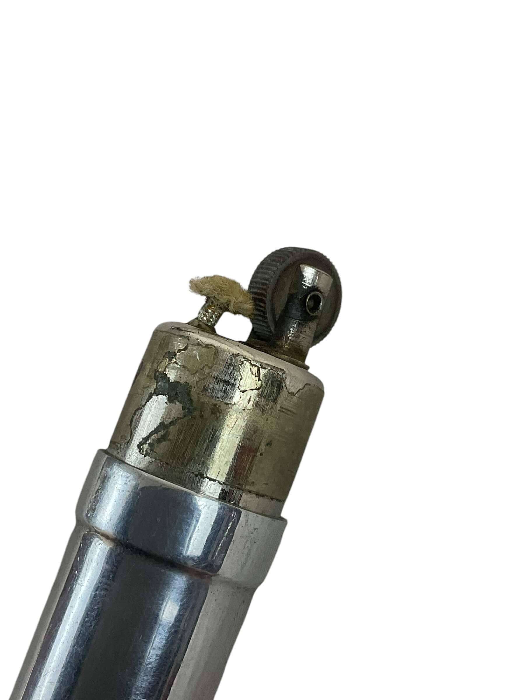 This WW2 British Trench Art Lighter 75mm is a fascinating relic from one of the most transformative periods in world history. Crafted meticulously in 1941, at the height of World War II, this item embodies the resilience and creativity of British soldiers in the trenches. Measuring 75mm, the lighter is small and compact, reflecting the practical constraints of wartime. It’s a remarkable example of ‘trench art’, a term for items made by soldiers, prisoners of war, or civilians from war material or debris. This lighter carries the palpable aura of history and the personal touch of its unknown creator. It is not just a lighter but an artifact that tells a story of endurance, creativity, and the human spirit amidst the turmoil of war. This piece would be an exceptional addition to any collection of historical or military memorabilia.