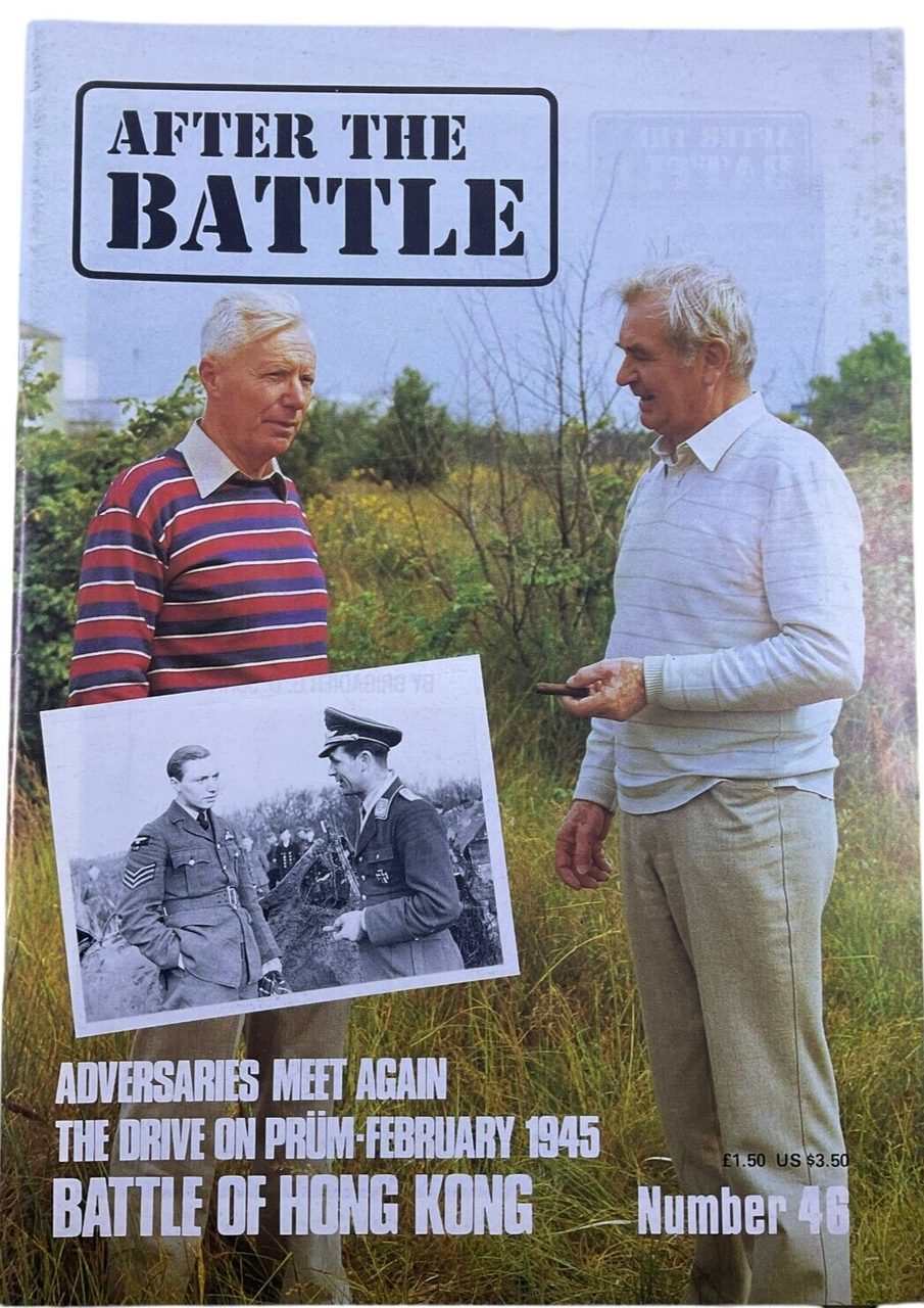 This is a used softcover WW2 British US German After The Battle No 46 Adversaries Meet Again The Drive on Prum February 1945 Battle Hong of Kong Reference Magazine. Total of 53 pages with lots of pictures and information.