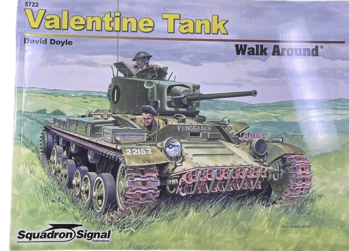 This is a used softcover WW2 British Valentine Tank Walk Around Squadron Signal Issue 5722 Reference Book. Total of 88 pages with lots of pictures and information.