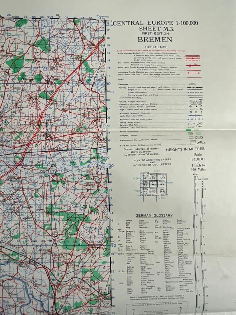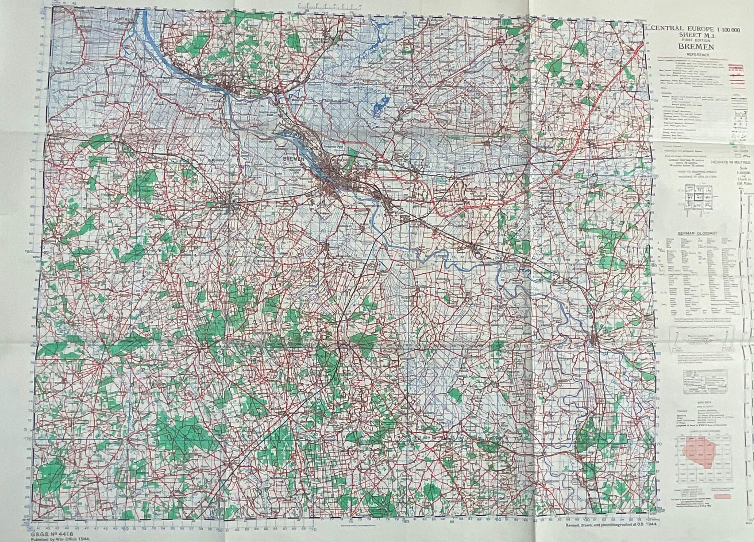WW2 British War Office Map of Bremen Germany 1944 Dated 25″ X 34″