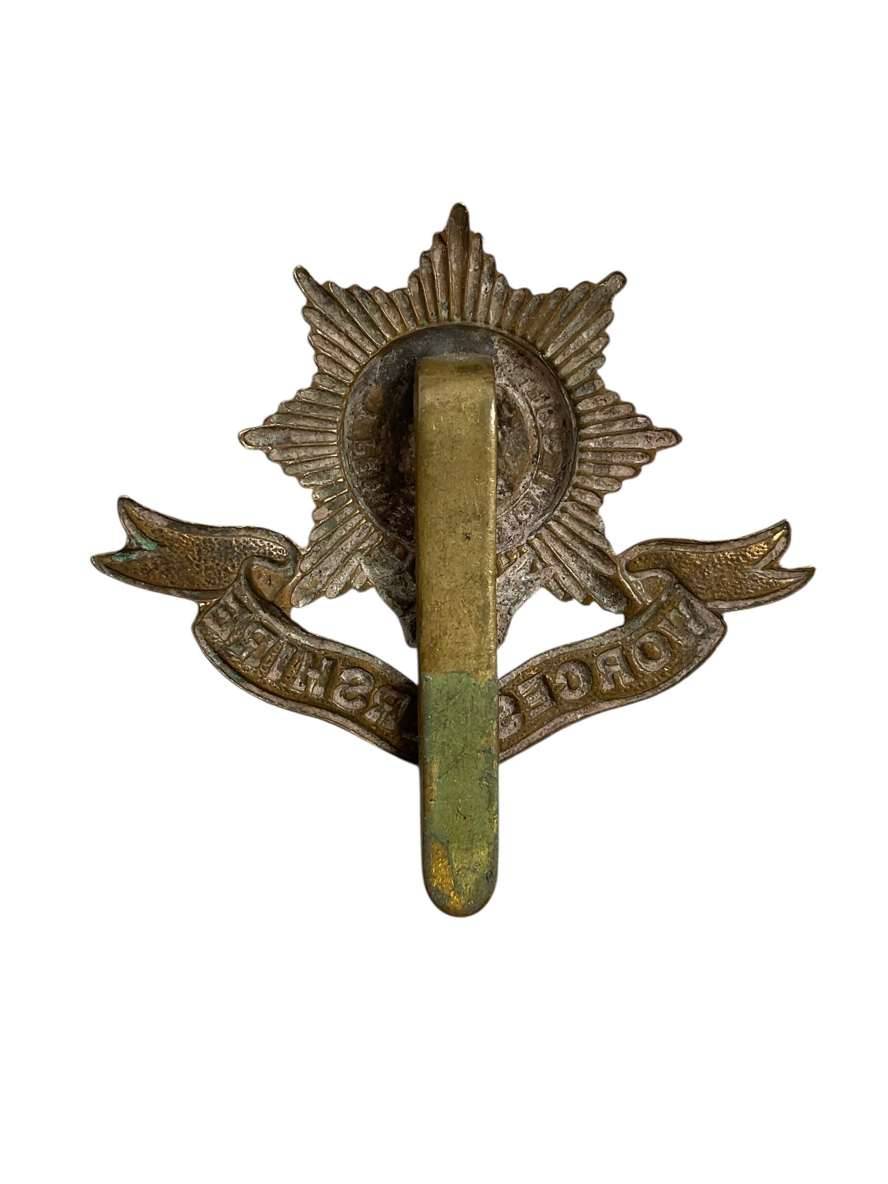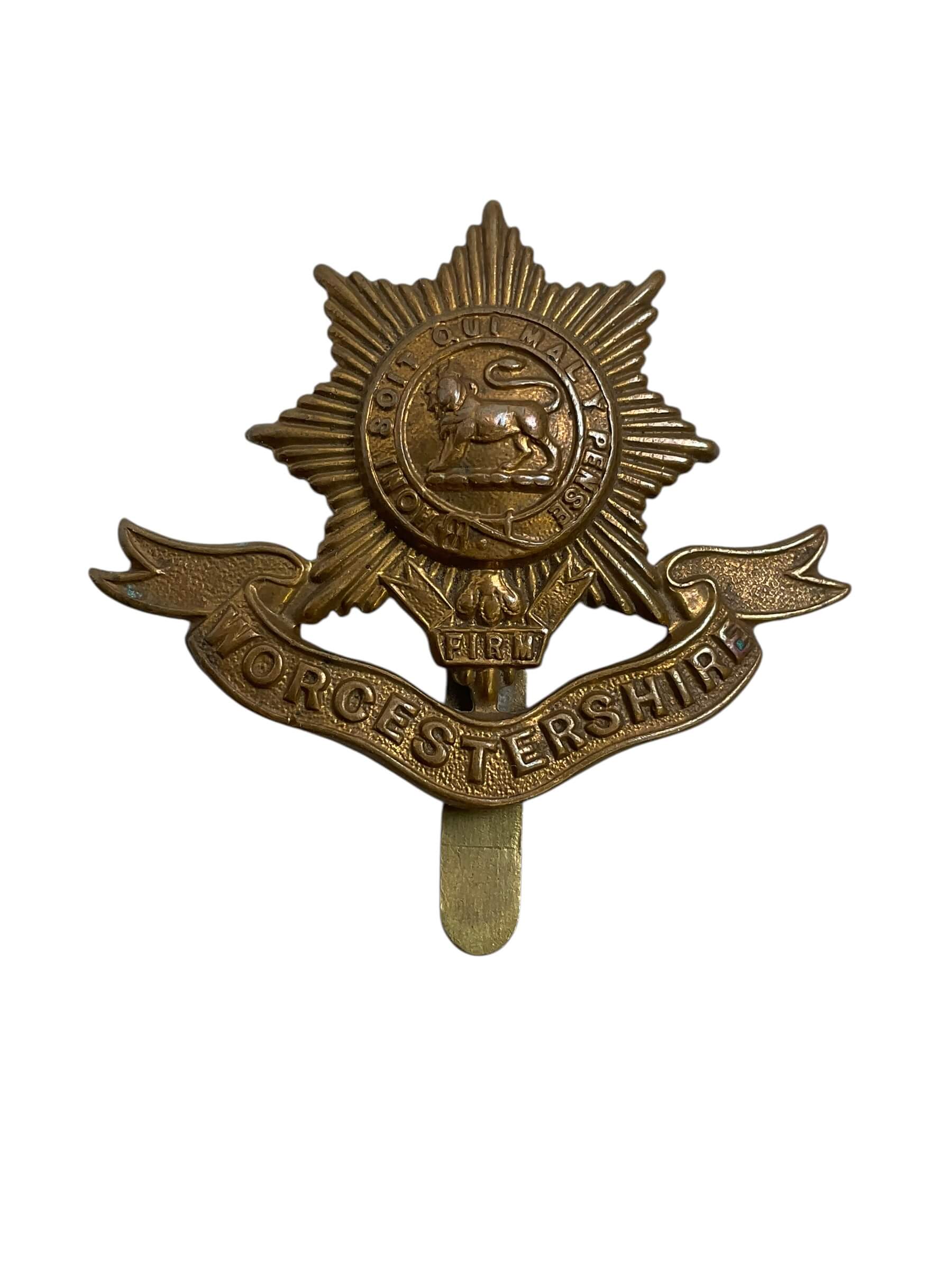 The WW2 British Worcestershire Regiment Cap Badge is a historic military memorabilia from the Second World War. It was worn by the soldiers of the Worcestershire Regiment, a line infantry regiment of the British Army, symbolizing their bravery and dedication. Made of solid brass, the badge features a depiction of a pear tree, signifying the county of Worcestershire, and a lion, representing the British monarchy. The top of the badge is inscribed with the words ‘FIRM’, the motto of the Worcestershire Regiment. With its intricate detailing and historical significance, this cap badge is not just a military artifact, but a piece of history that evokes the spirit of the courageous Worcestershire soldiers who served during the war. It is a valuable item for collectors and military history enthusiasts alike.