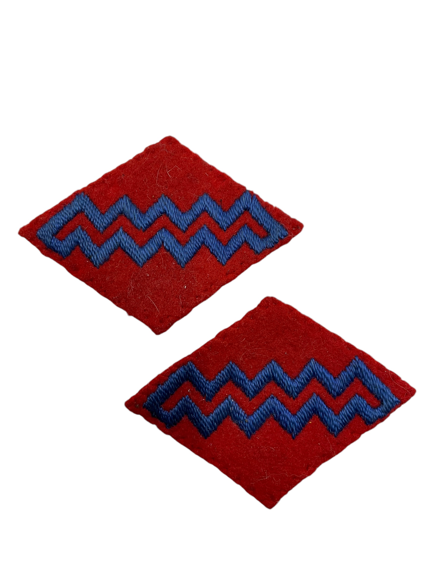 This pair of WW2 Canadian 1st AGRA Artillery Corps Patches Insignia is a significant piece of military history. The 1st Army Group Royal Artillery (AGRA) was a vital operational formation of the Canadian Army during the Second World War. These patches symbolize the bravery and dedication of the artillery corps who served their country. They feature the distinctive red and blue design of the 1st AGRA, intricately embroidered on durable fabric. Both patches are in excellent condition, with vibrant colors and secure stitching, making them a valuable addition to any collection of military memorabilia. Despite their age, these patches have been well-preserved, showcasing the quality of manufacturing during that era. Owning these patches is like owning a piece of Canadian history, making them a must-have for history enthusiasts, military collectors, or anyone with an interest in World War II.