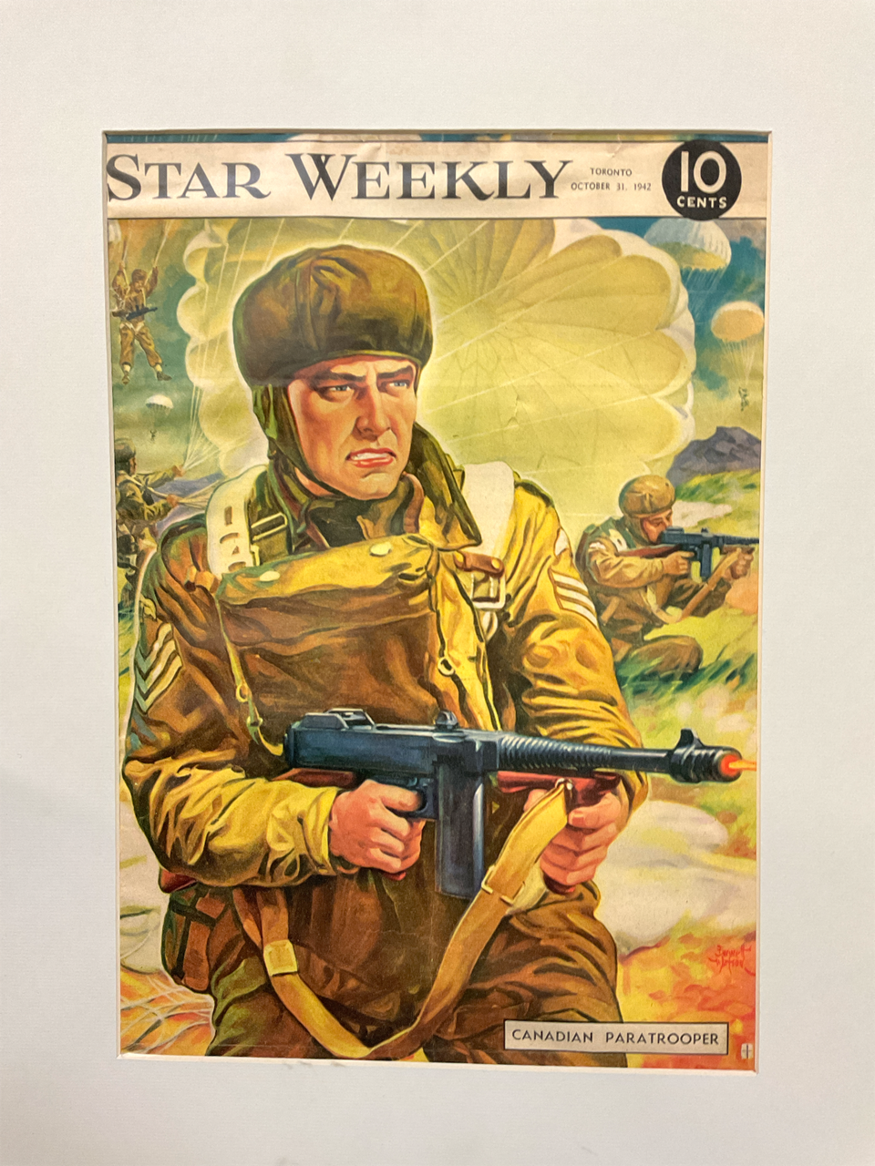 WW2 Canadian 1st Can Para Airborne Star Weekly 1942 Magazine Cover, COVER ONLY !!! has been matted in card. 10 x 15 Cover, 16 x 20 inc matte