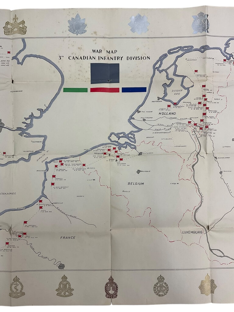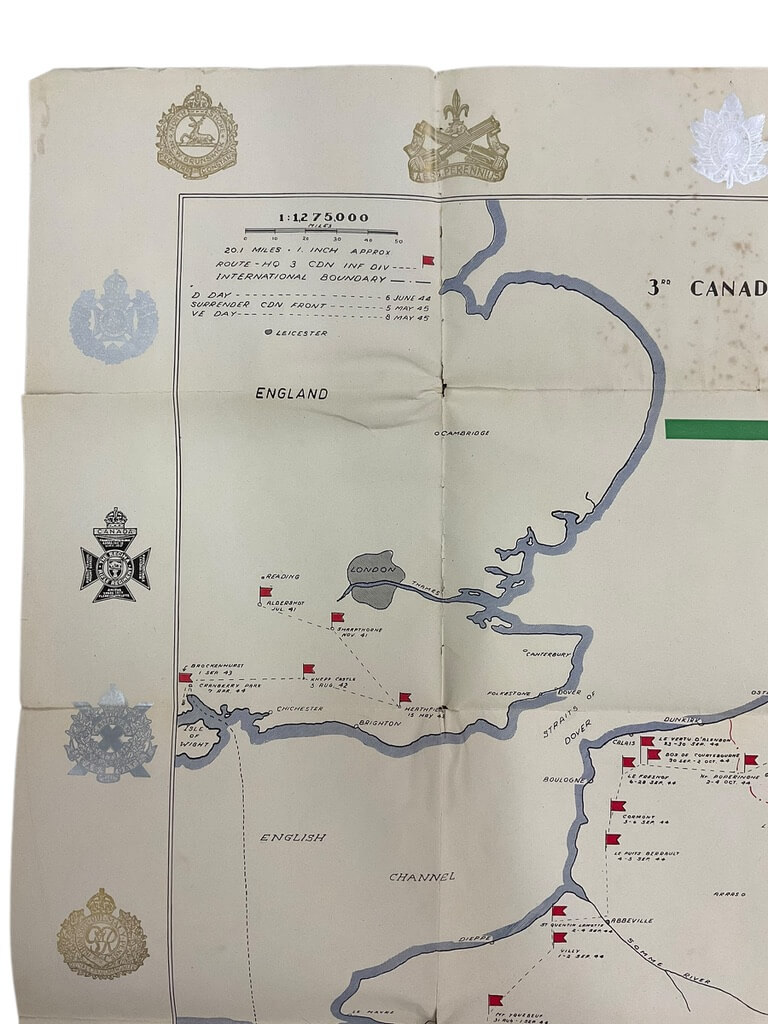 The ‘WW2 Canadian 3rd Division War Map’ is an invaluable historical artifact that provides intricate details about the strategic operations of the Canadian 3rd Division during the World War II. This map offers a comprehensive layout of the battlefields and the terrains they traversed, reflecting the specific movements and deployments of the division. The map is enriched with annotations including key locations, battle lines, and troop movements, offering a detailed chronicle of the division’s engagements. It is an indispensable resource for historians, military enthusiasts, and anyone interested in the tactical aspects of World War II. This artifact serves as a testament to the strategic planning and execution that underpinned the Canadian 3rd Division’s contribution to the Allied victory. The ‘WW2 Canadian 3rd Division War Map’ is not just a map, it’s a tangible piece of history, capturing the courage, resilience, and determination of those who served.