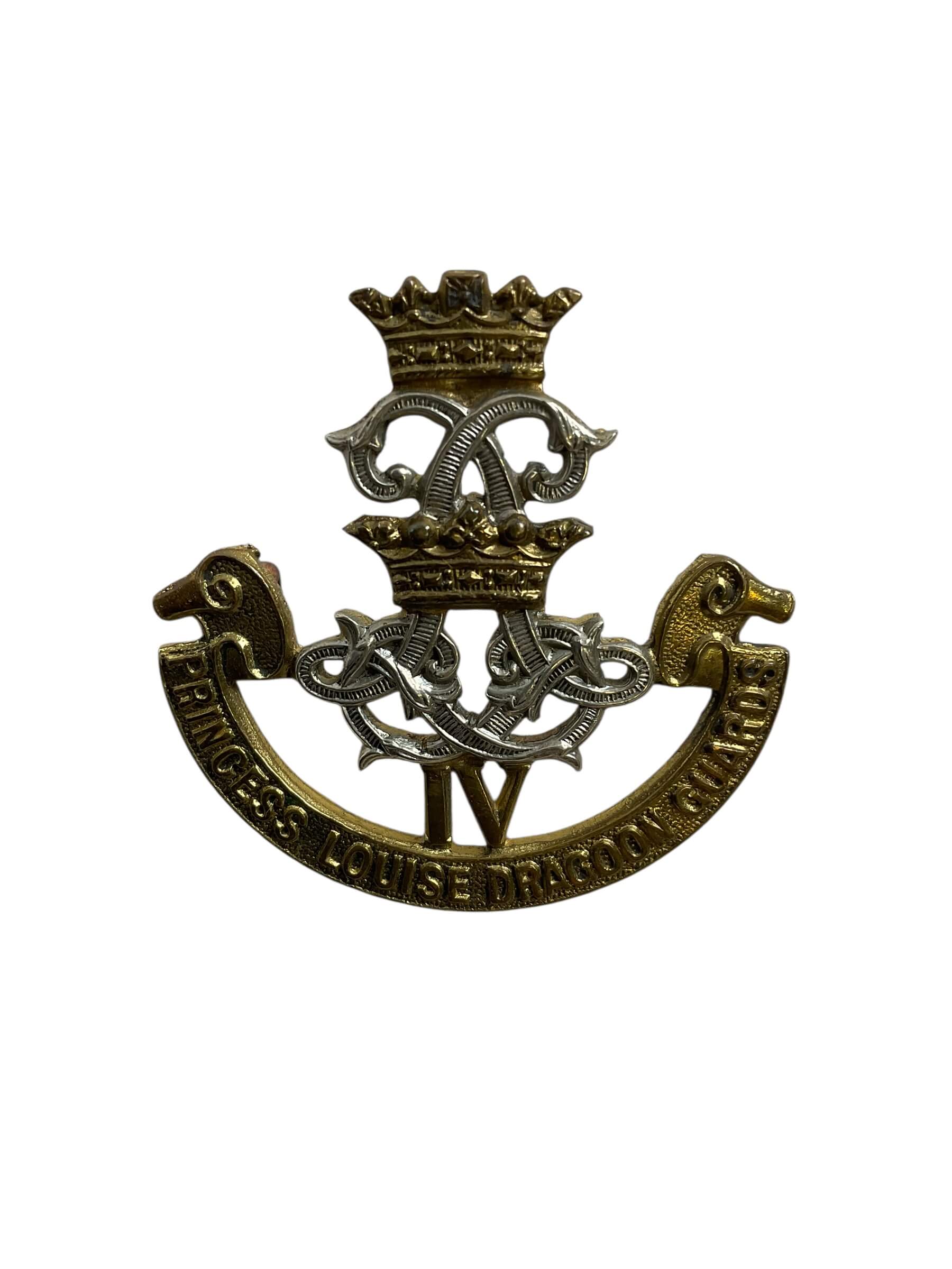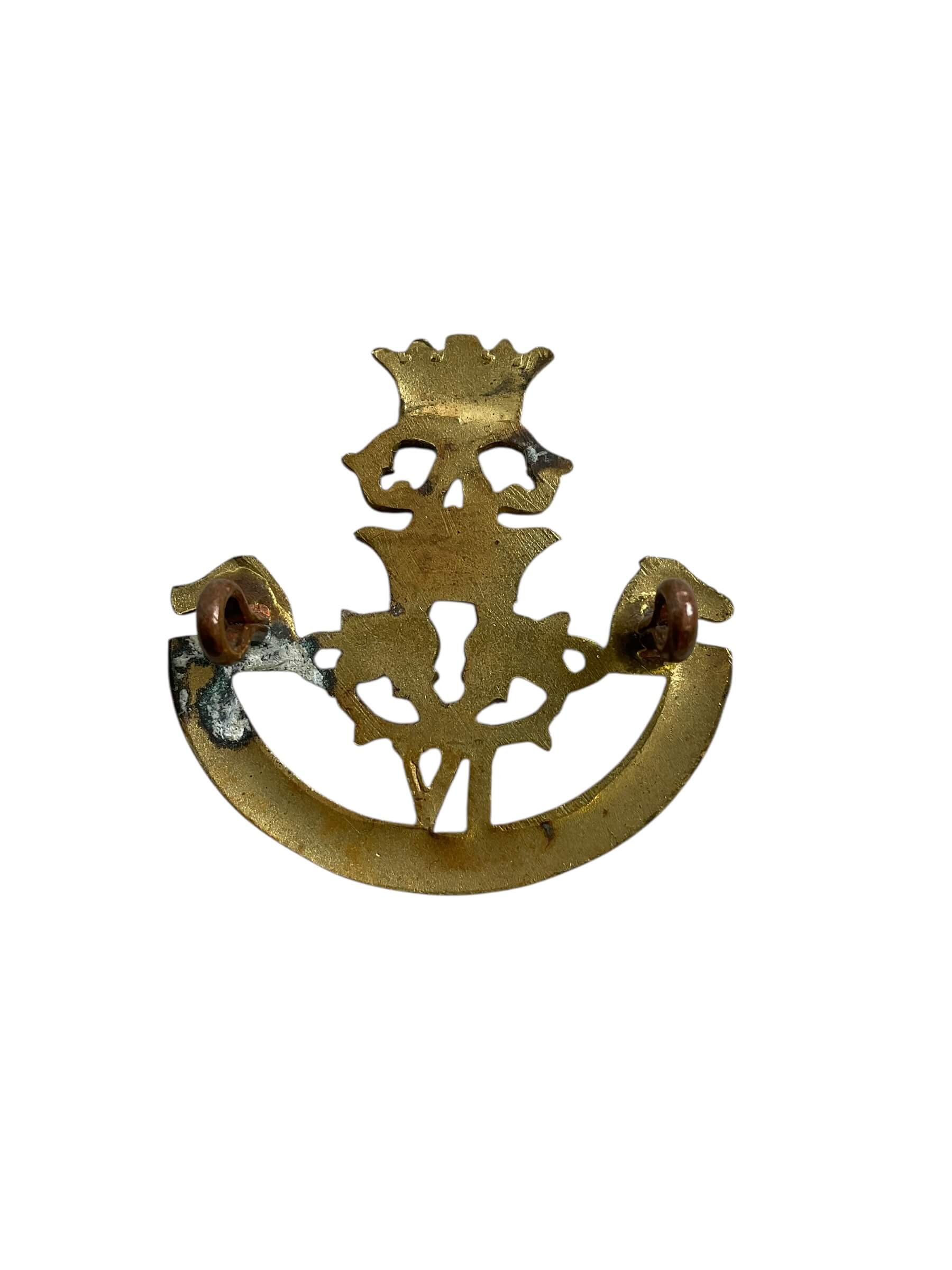 The WW2 Canadian 4th PLDG Officer’s Cap Badge is a remarkable piece of military memorabilia from World War II. It was worn by officers of the 4th Princess Louise Dragoon Guards (PLDG), a prestigious armored regiment of the Canadian Army. The badge, often made of brass or bronze, features an intricately designed maple leaf, a distinguishing emblem of Canada, with the number ‘4’ and the letters ‘PLDG’. This badge was prominently displayed on the officer’s cap, serving as both an identification symbol and a mark of rank. The design encapsulates the pride, bravery and the resilience of the 4th PLDG during a pivotal time in world history. Collectors of military artifacts or enthusiasts of Canadian history would find this piece particularly intriguing due to its historical significance and the stories it holds within its aged patina.