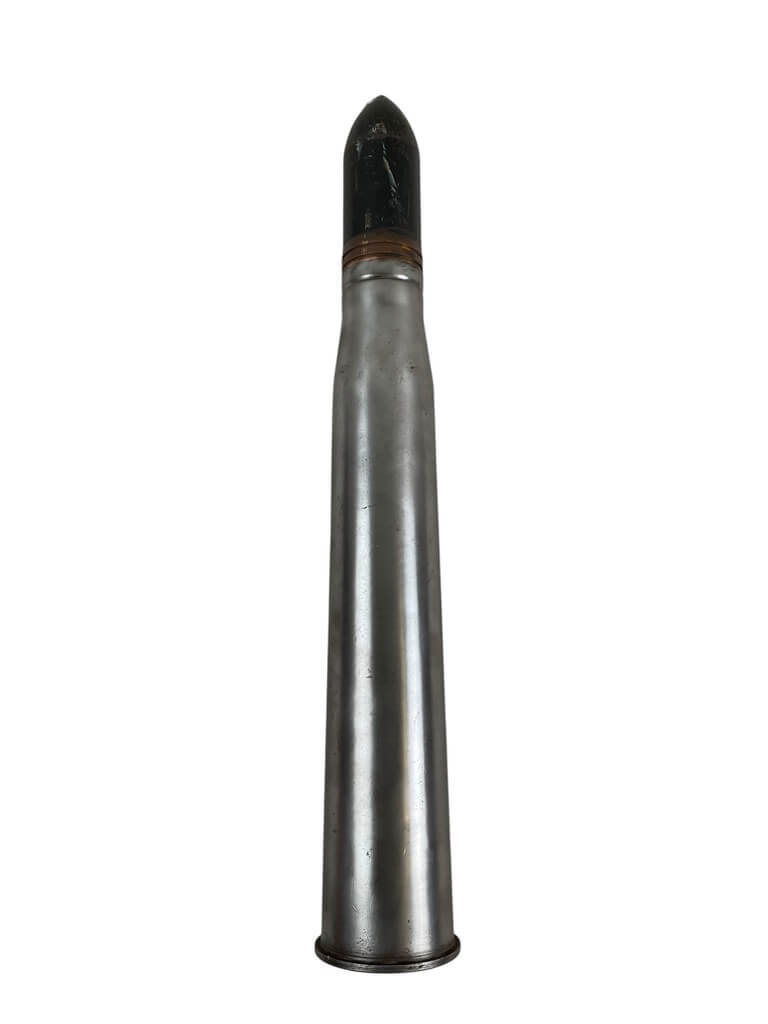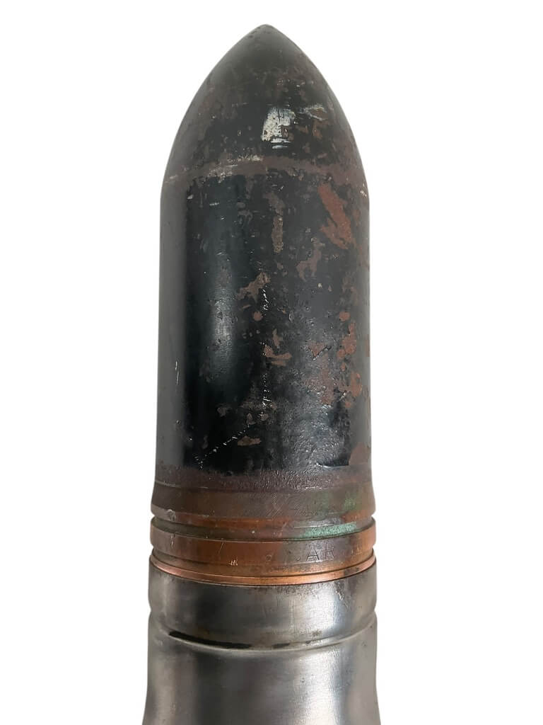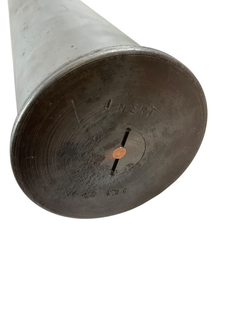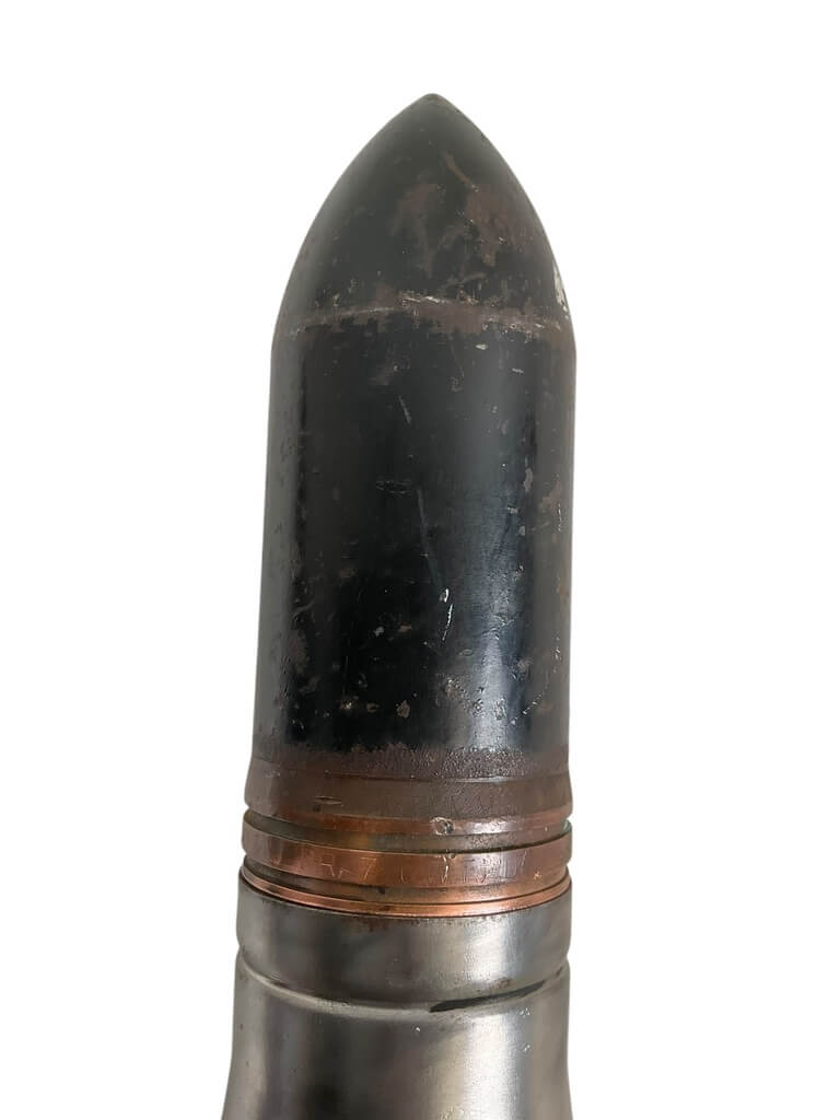 This item is an authentic WW2 Canadian 6 Pounder Anti-Tank Gun Shell with its original casing. It is completely inert, meaning all explosive components have been removed, making it safe for display or collection. The 6 Pounder was a primary anti-tank artillery gun used by the Canadian forces during World War II. This specific artifact is a testament to the technological advancements and the raw materials used in warfare during this historical period. The shell and casing show signs of age, but are in good condition, preserving the integrity of this remarkable piece of history. It’s a must-have for military history enthusiasts, or for those with a special interest in Canadian military artifacts. Please note, due to the nature of this item, it should be handled with care and kept out of reach from children.