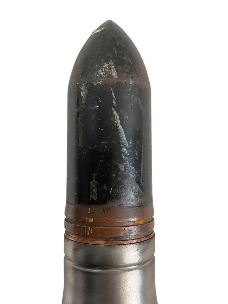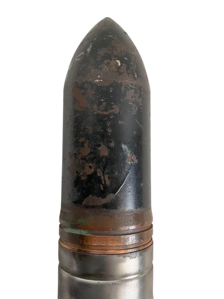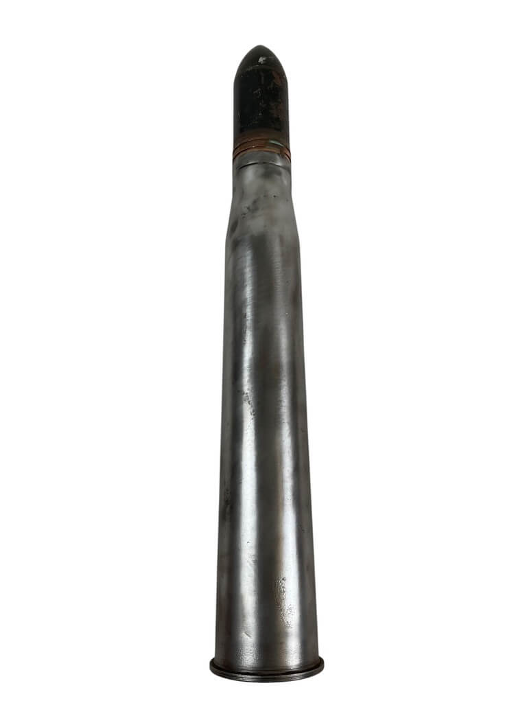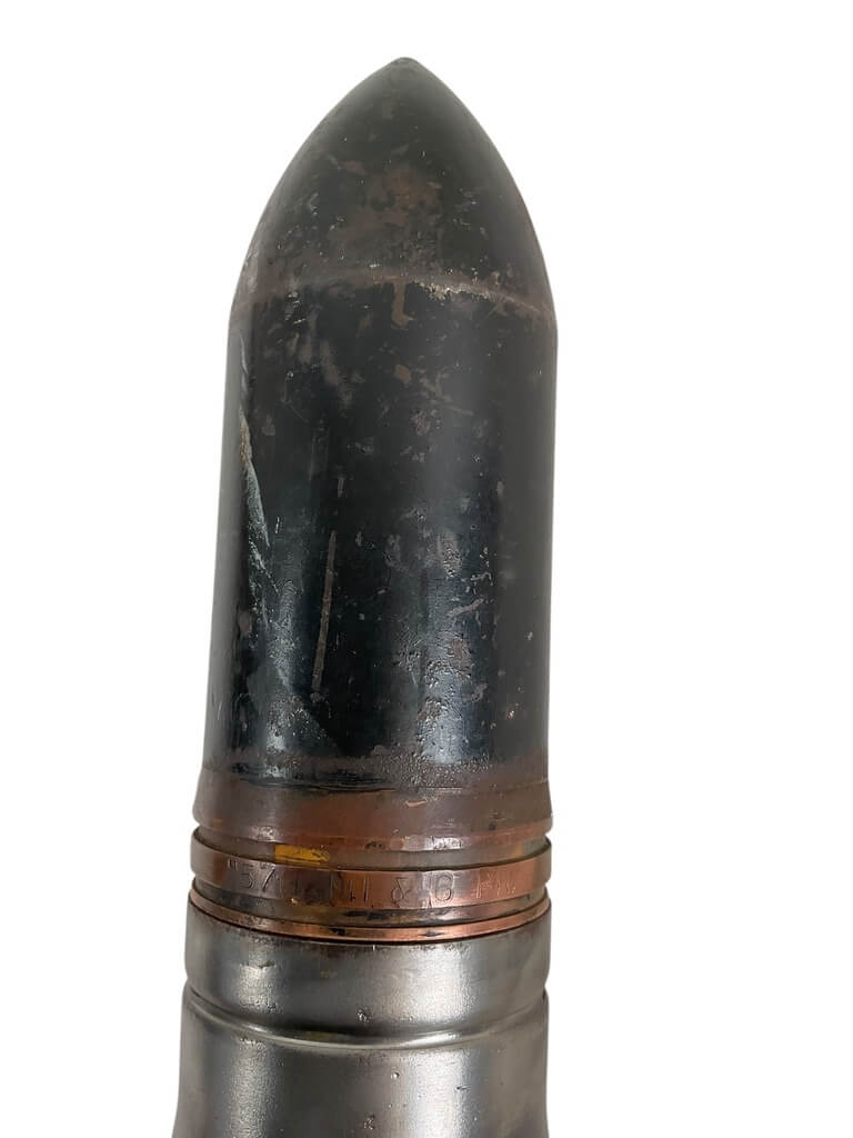 This item is an authentic WW2 Canadian 6 Pounder Anti-Tank Gun Shell with its original casing. It is completely inert, meaning all explosive components have been removed, making it safe for display or collection. The 6 Pounder was a primary anti-tank artillery gun used by the Canadian forces during World War II. This specific artifact is a testament to the technological advancements and the raw materials used in warfare during this historical period. The shell and casing show signs of age, but are in good condition, preserving the integrity of this remarkable piece of history. It’s a must-have for military history enthusiasts, or for those with a special interest in Canadian military artifacts. Please note, due to the nature of this item, it should be handled with care and kept out of reach from children.