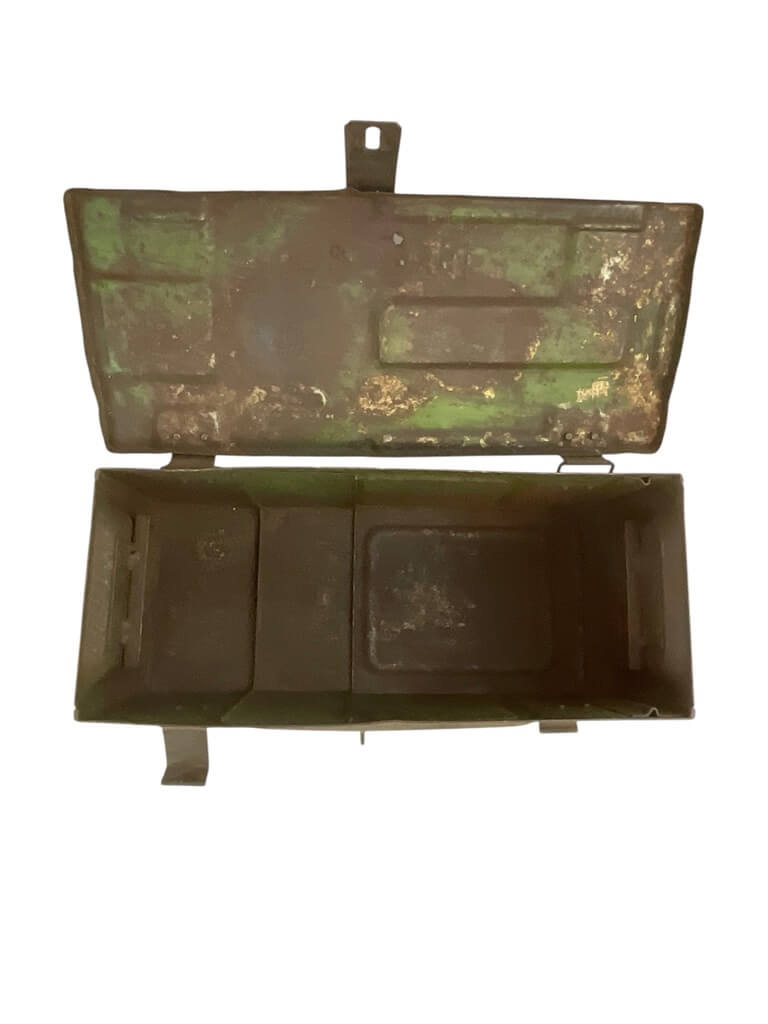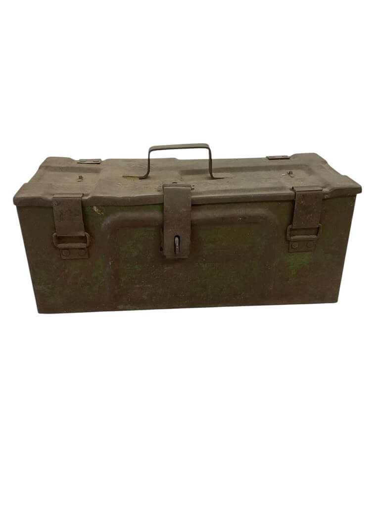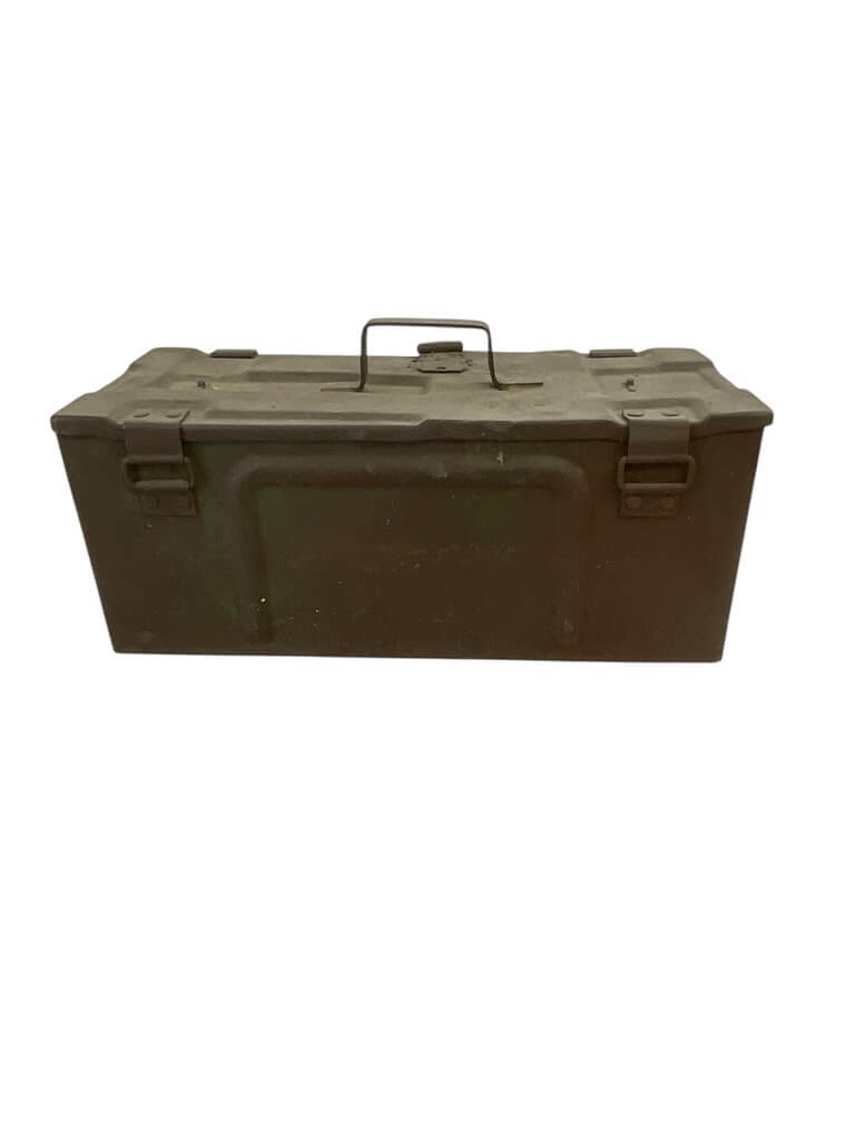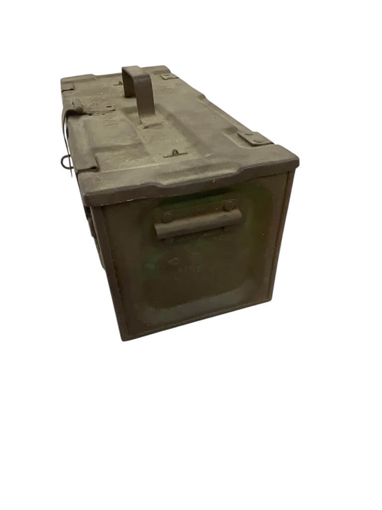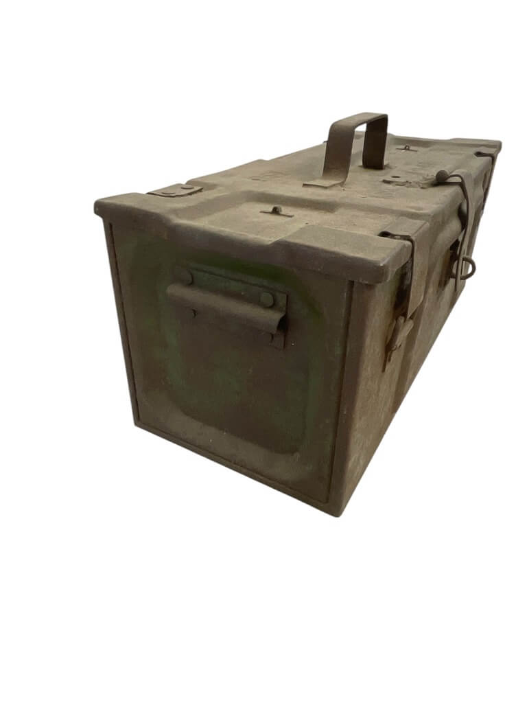 This listing presents a unique relic from World War II – a 1941 dated Canadian Ammo Box, which has been ingeniously modified with a lock. This sturdy box, originally used to transport ammunition during the war, showcases the robust and durable construction of wartime manufacturing. The added lock enhances its usefulness, making it an ideal storage solution with an antique aesthetic. Despite its age, the box is in fine condition, with the original markings still visible, providing a glimpse into its historical significance. The 1941 date stamp authenticates its origin, making it a valuable item for collectors interested in military memorabilia. Its rustic appeal is not just confined to collectors but also appeals to those who appreciate vintage decor. This WW2 Canadian ammo box is not just a piece of history but a versatile piece with practical utility.