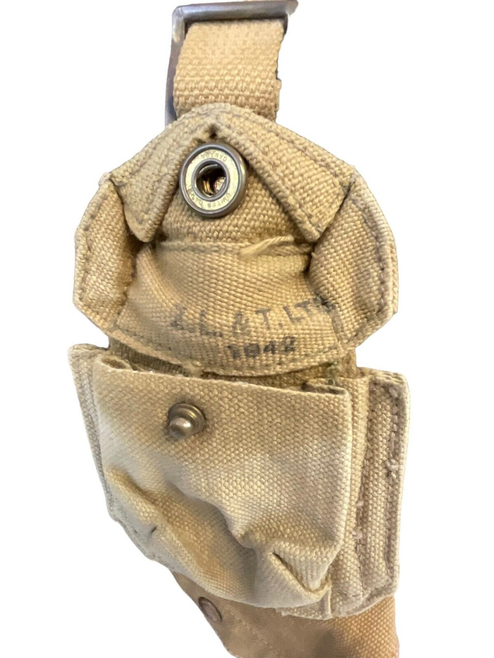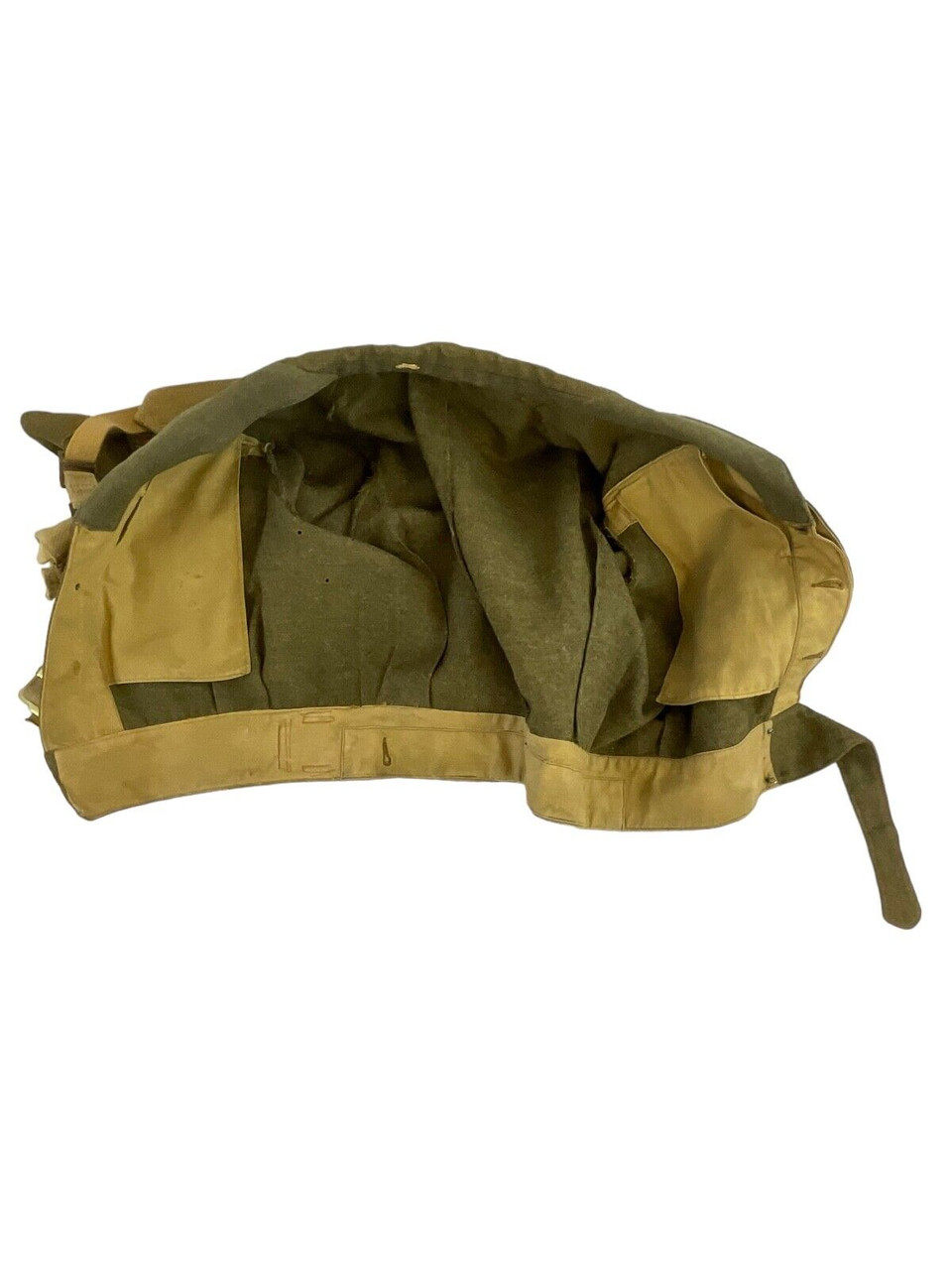 This outstanding collection, titled ‘WW2 Canadian Armoured Corps Battle Service Dress Webbing Hat Captain Grouping,’ offers a fascinating glimpse into the attire and accoutrements of a Canadian Armoured Corps officer during World War II. The grouping features meticulously preserved items including a pristine battle service dress, complete with period-appropriate insignias and badges denoting the rank of Captain. Additionally, it includes a rugged webbing set used for carrying essential gear, a hat that epitomizes the styles worn by Canadian officers, and various personal effects that paint a vivid picture of daily life in the Corps. Each piece in this collection is authentic and tells its own story of bravery and duty in the fiercely contested battlefields of WWII. This unique ensemble is not only a treasure trove for military historians and collectors but also serves as a poignant tribute to the valor and sacrifices of Canada’s armored forces.