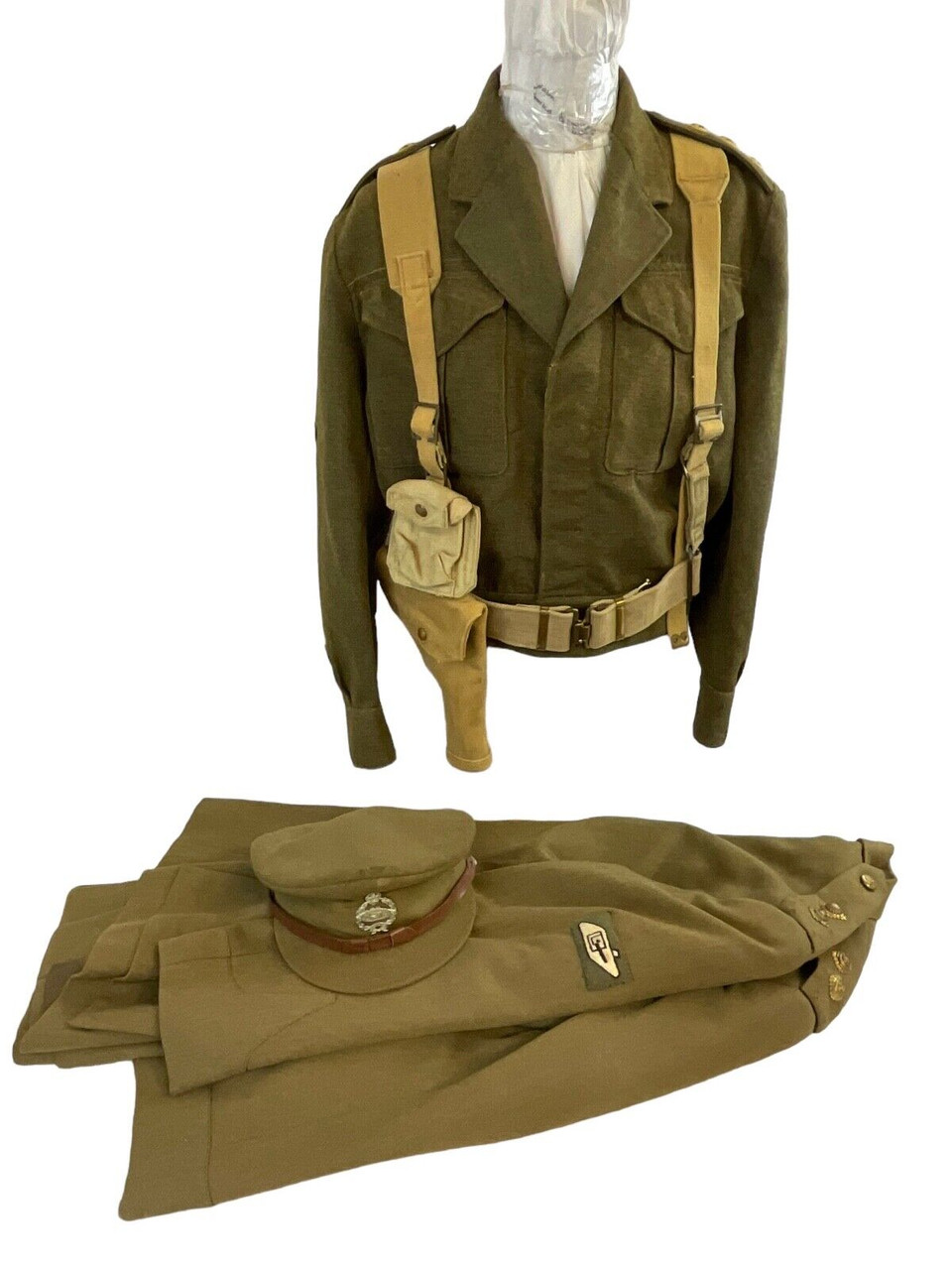 WW2 Canadian Armoured Corps Battle Service Dress Webbing Hat Captain Grouping