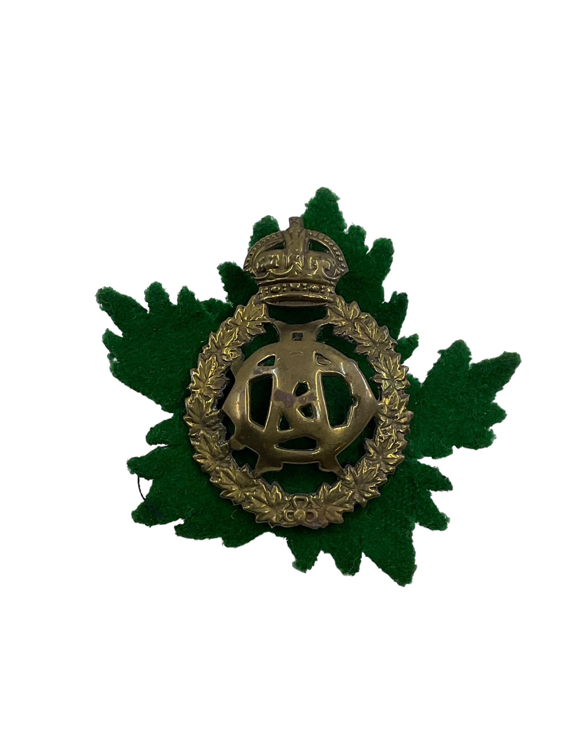 WW2 Canadian Army Dental Corps Cap Badge with Green Maple Leaf Backing