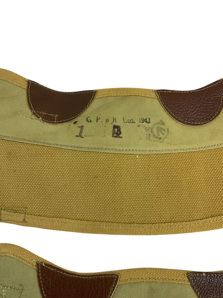 This product refers to a pair of the WW2 Canadian Army Gators, intended for size one. These gators were manufactured and dated back in 1943, during the peak of World War II. These vintage military artifacts are a representation of the historical Canadian military gear. Made from durable, high-quality materials, they were used by Canadian soldiers to protect their legs and boots from adverse weather and harsh environmental conditions during the war. The gators are designed to wrap around the wearer’s leg and boot, keeping debris and water out. They exhibit a mix of simplicity, functionality, and toughness. Despite their age, these gators have been preserved in good, wearable condition. These 1943-dated Canadian Army Gators are not just a pair of protective wear but a piece of history, making them perfect for war memorabilia collectors and military history enthusiasts.