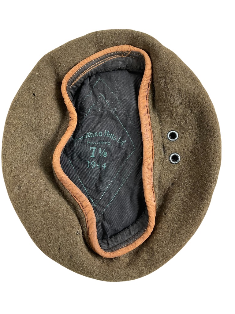 This WW2 Canadian Army Khaki Beret, Size 7 1/8, Dated 1944, offers a remarkable glimpse into military history. Crafted in a characteristic khaki, this official issue cap was worn by the brave soldiers of the Canadian Army during the Second World War. Its size, 7 1/8, would have suited a variety of servicemen. The beret carries a significant date stamp of 1944, marking it as a genuine artifact from the pivotal final year of the war. This item is not just a piece of headwear, but a tangible connection to the past – a testament to the courage and dedication of those who served. Whether you’re a collector of military memorabilia or a history enthusiast, this WW2 Canadian Army Khaki Beret is an invaluable addition to any collection.