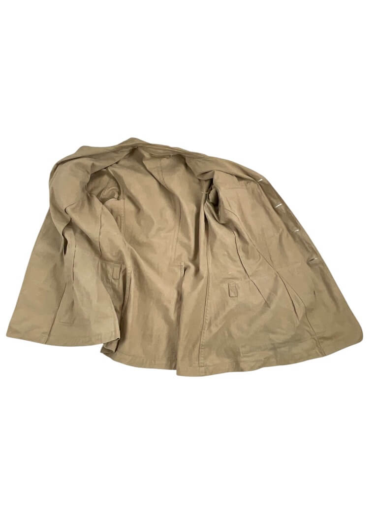 ‘WW2 Canadian Army Lieutenant Artillery Tropical Officers Service Dress’ is a remarkable piece of military history from the Second World War era. This exclusive attire was worn by Canadian Army Lieutenants serving in the Artillery division in tropical climates during the war. The dress is characterized by its lightweight, breathable fabric designed to accommodate the harsh tropical conditions. It features the distinctive Canadian Army insignia, Lieutenant rank badges, and Artillery division emblems, meticulously embroidered onto the uniform. The uniform is steeply rooted in Canada’s military heritage, symbolizing the country’s contribution to the Allied forces in WWII. This service dress is not only a collector’s item but also provides a significant insight into the conditions faced by officers during wartime. It serves as a tangible reminder of the bravery and dedication of the Canadian Army Lieutenants who served in the Artillery division during one of the most challenging periods in world history.