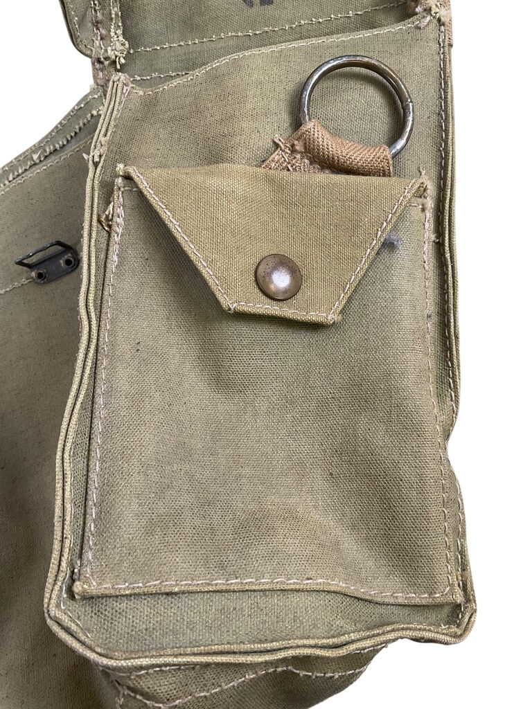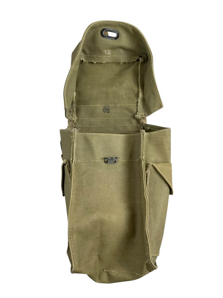 This WW2 Canadian Army Light Respirator Bag is an authentic piece of military history, having been used by soldiers in the Canadian Armed Forces during the second World War. It is marked with the distinctive ‘C Broad Arrow’, a symbol used by the Canadian government to denote military issue equipment. This bag was specifically designed to carry a light respirator, a vital piece of equipment for soldiers in the war, protecting them from potential gas attacks. It is made from sturdy canvas material and features a simple strap for easy carrying. The bag’s design and markings provide a tangible link to Canada’s military past, making it a significant collectible for history enthusiasts and military memorabilia collectors alike. Its robust construction and historic significance ensure it remains a valued artifact of a pivotal period in world history.