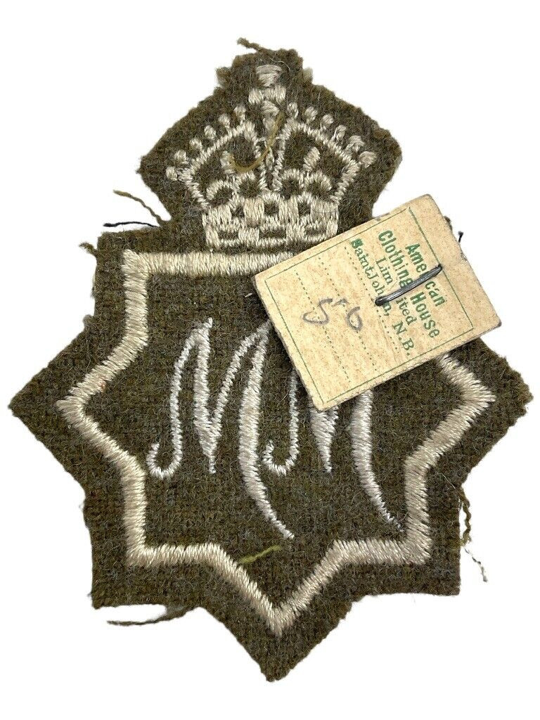 WW2 Canadian Army MM Mortar Man Trade Badge Patch with Tailors Tag