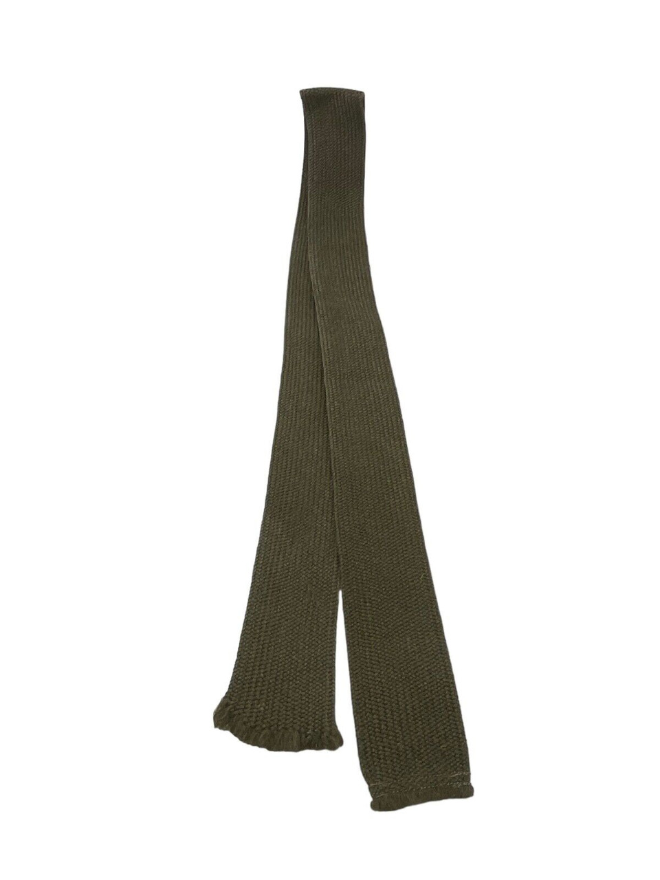 The ‘WW2 Canadian Army Officers Knit Wool Tie’ is a unique piece of military history and a symbol of the Canadian forces’ dedication and resilience during World War II. Crafted from high-quality wool, this tie showcases the meticulous knitting techniques of the era and serves as a testament to the resourcefulness and ingenuity of the period’s military attire. Designed for officers, it embodies a blend of practicality and sophistication, providing both warmth and a polished appearance. The tie’s durable material and distinguished style make it a prized collectible for history enthusiasts and fashion aficionados alike. Whether you are drawn to its historical significance or its vintage charm, the WW2 Canadian Army Officers Knit Wool Tie is a remarkable artifact that encapsulates a pivotal moment in history, reflecting both the courage of the Canadian troops and the elegant traditions of military dress codes.