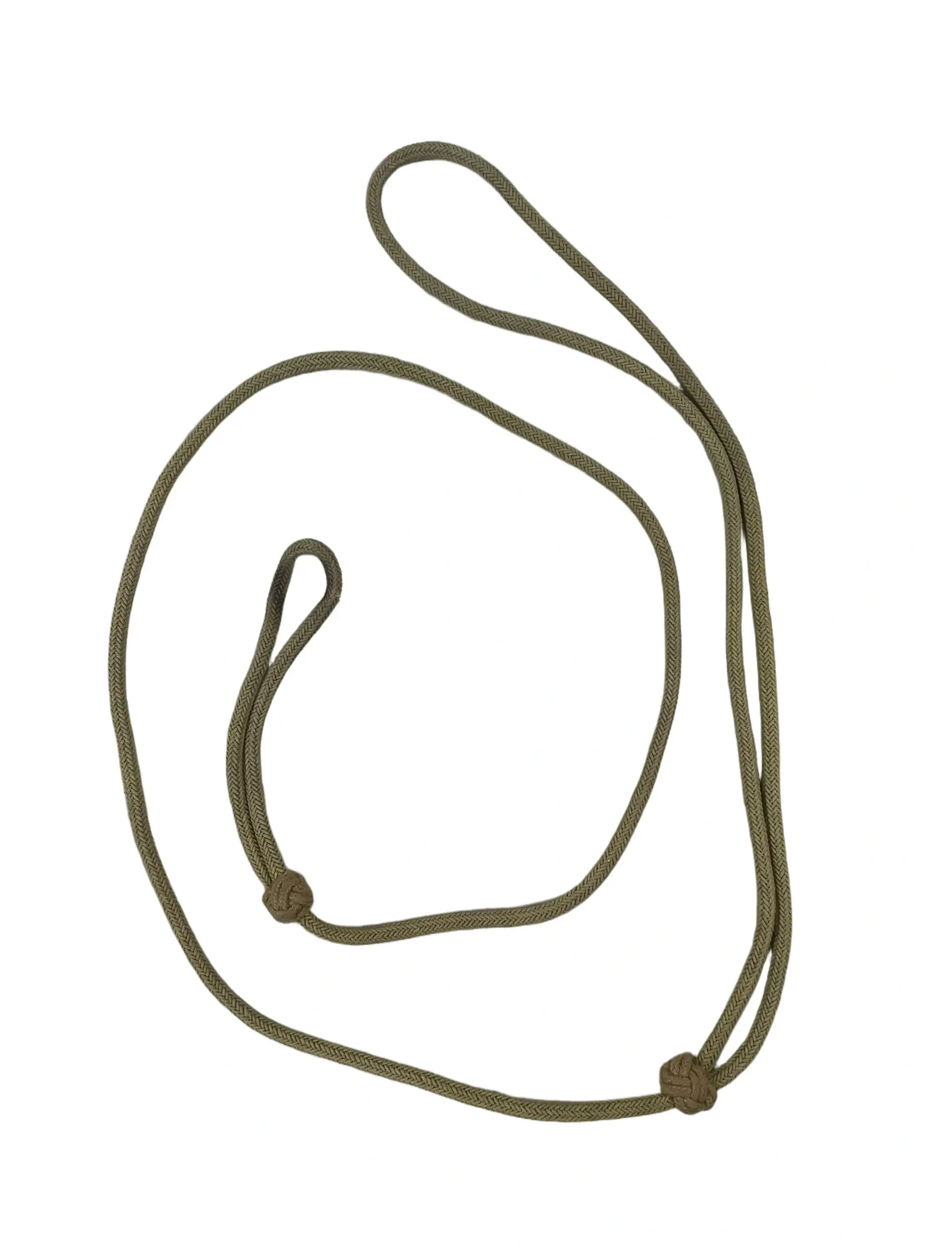 The WW2 Canadian Army Officer’s Lanyard is a standard-issue accessory used by commissioned officers in the Canadian Army during the Second World War. Typically woven from durable cord, the lanyard features a neutral or regimental color scheme, consistent with Canadian Army uniform regulations of the era. Worn over the shoulder and looped around an epaulette, it provided a functional method for attaching small items such as a whistle or compass, while also serving as an element of uniform distinction. The design of the lanyard reflects military conventions of the period, emphasizing both utility and visual uniformity. These lanyards were commonly issued to officers and sometimes non-commissioned officers across various branches and regiments, with specific patterns or colors denoting unit affiliation or rank where applicable. This artifact represents standard parade and service dress equipment, offering insight into Canadian military attire and practices during the 1939–1945 conflict.