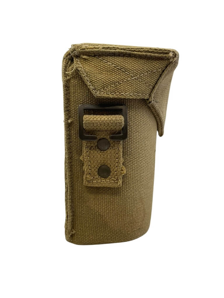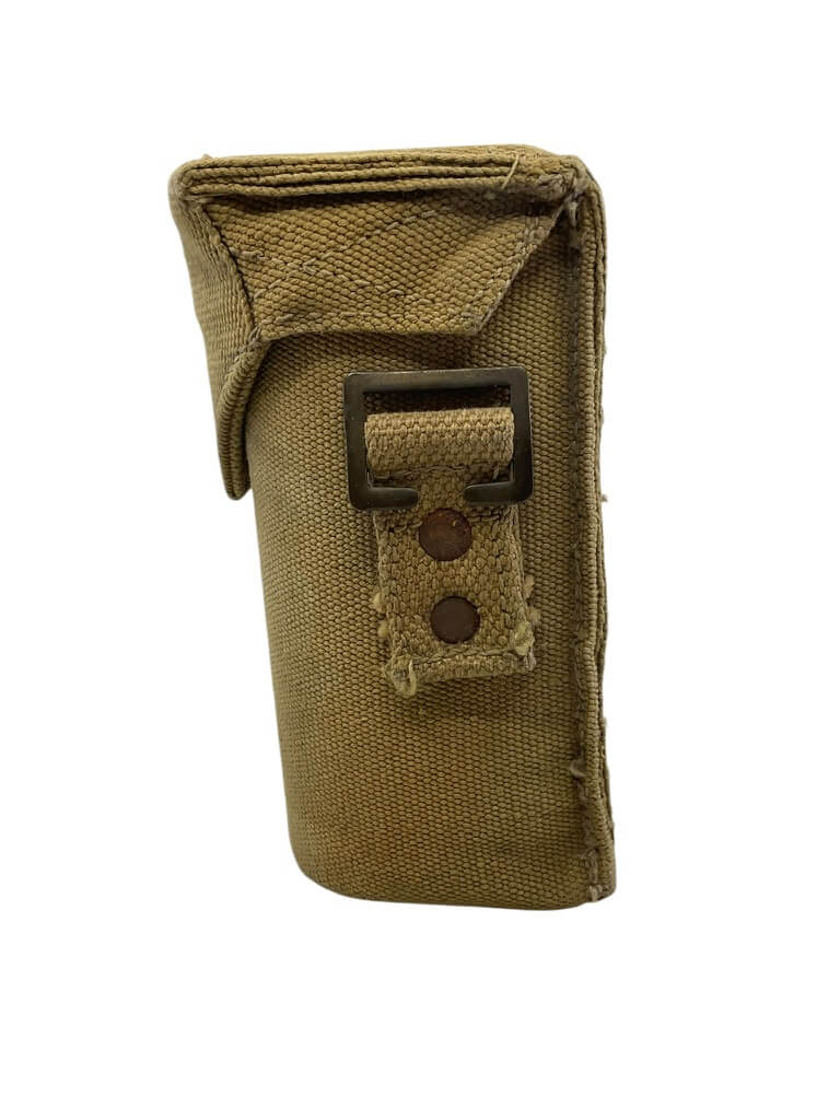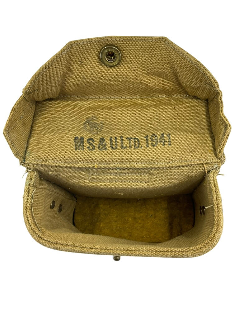 This item is a WW2 Canadian Army P37 Bino Case C Broad Arrowed 1941 Dated, a remarkable piece of military memorabilia. Used during World War II by the Canadian Army, this case was specifically designed to hold and protect binoculars. The P37 reference indicates it’s part of the Pattern 37, the standard kit used by the British Commonwealth forces during the war. The case is marked with a “C Broad Arrow,” an official Canadian government property marking, signifying its authenticity. A notable feature is the 1941 date, stamped clearly on the case, denoting the year of manufacture. Crafted from sturdy, durable material, this binocular case has withstood the test of time and symbolises a significant period in world history. It serves as a great collectible for military enthusiasts or historians.