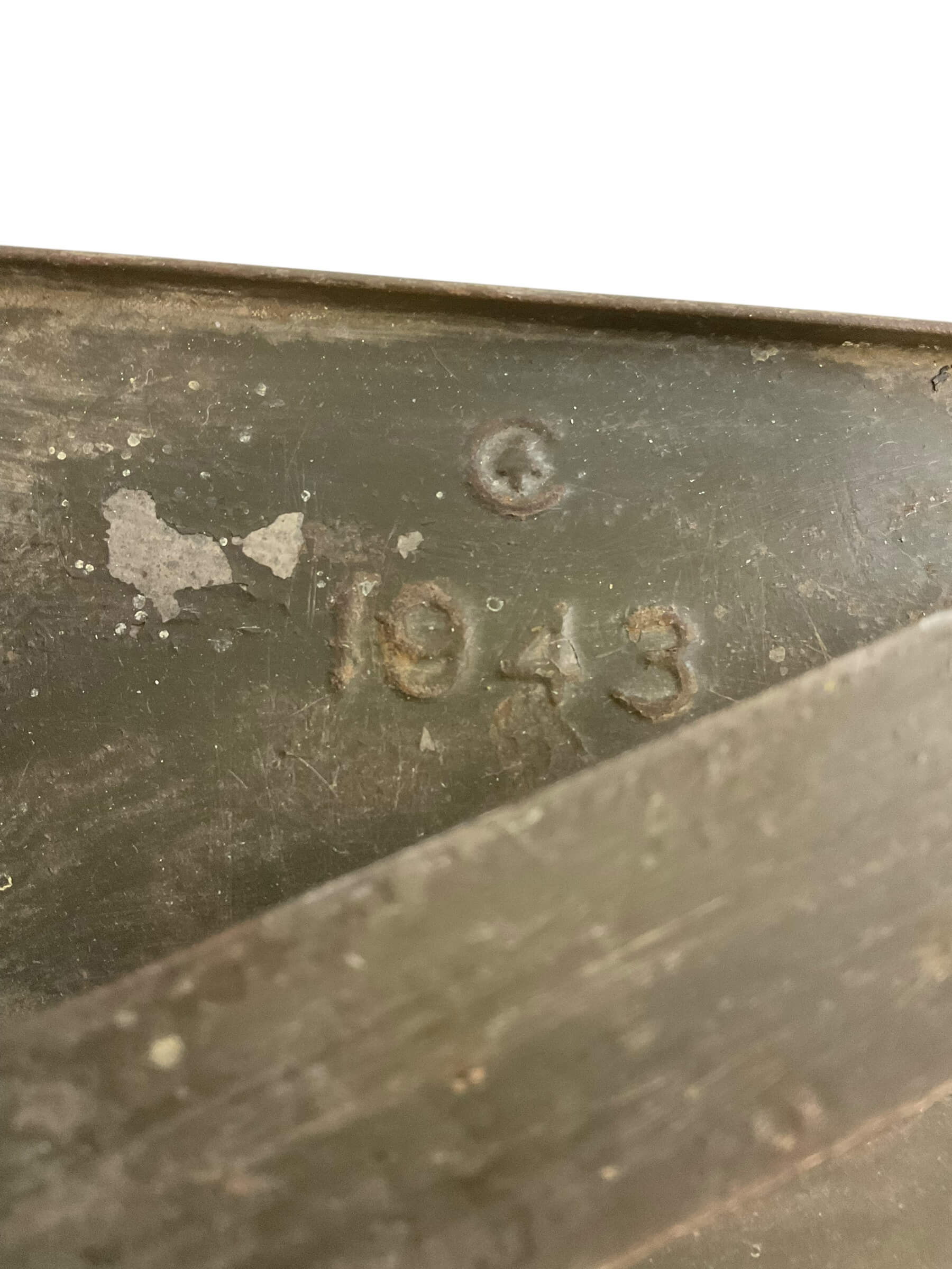 This is an authentic WW2 Canadian Army Petrol Can, which is clearly dated 1943 and marked with the distinctive ‘C Broad Arrow’, a symbol used to denote Canadian military property. An EMPTY can, it is a unique piece of history that carries the weight of a significant period in global history. The can is made from sturdy metal, showing signs of wear and tear that adds to its historical appeal. Its design is simple yet functional, with a sturdy handle for easy transport. The petrol can was originally used to transport fuel for various military vehicles and operations. This item offers a unique opportunity for collectors and history enthusiasts to own a relic from WWII, specifically from the Canadian army. It’s not just a petrol can, it’s a tangible link to the past that tells a story of resilience, survival, and bravery.