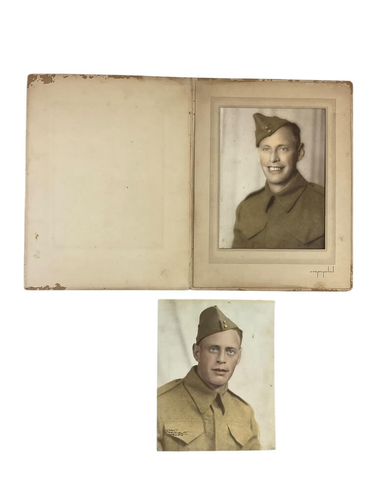 This listing features two rare, original photographs from the World War II era, prominently featuring identified members of the Canadian Army. These black-and-white images offer a striking glimpse into the past, showcasing the brave soldiers in their uniforms, possibly fresh from battle or in the midst of training. With clear identification of the individuals present, these photographs hold significant historical value, providing personal connections to the monumental global conflict. The photos are in good condition considering their age, offering collectors, historians, or anyone interested in military history a chance to own a piece of history. The stark realities of war are captured in these photos, making them a precious testament to the courage of the Canadian forces during World War II. These are not just photos; they are stories of bravery, resilience, and sacrifice. Both photos are 9.5 X 7.5 inches.