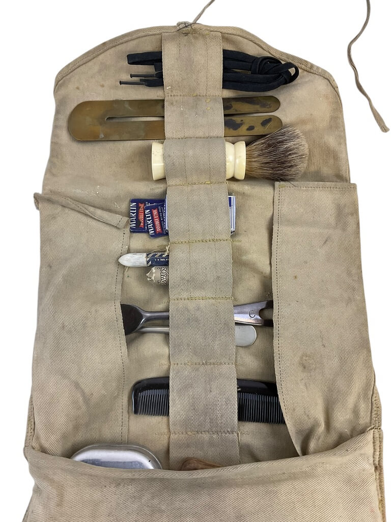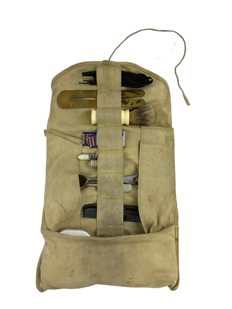 This WW2 Canadian Army Tan Holdall with Contents is a remarkable piece of military history. Dating back to the Second World War era, this authentic collectible was part of the standard issue kit for Canadian soldiers. The tan holdall boasts a sturdy canvas construction in a timeless shade of military tan, showcasing the practical and durable design of wartime gear. It comes complete with original contents that may include personal items, eating utensils and toiletries. Each item tells a unique story about life in the Canadian Army during WW2. This rare find is a must-have for military enthusiasts or history buffs, offering a tangible link to Canada’s past and a tribute to those who served. This holdall and its contents are not just artifacts, but a testament to the resilience and courage of the soldiers of yesteryears.