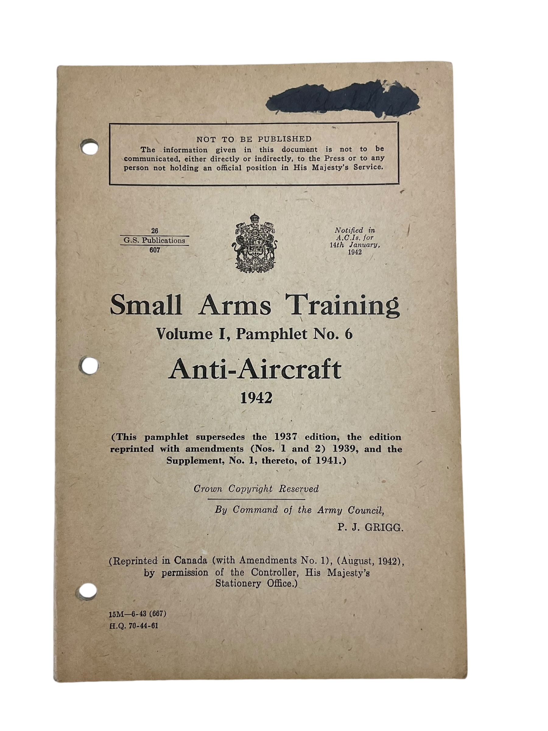 WW2 Canadian Army Vol 1 No. 6 Anti-Aircraft 1942 Training Manual