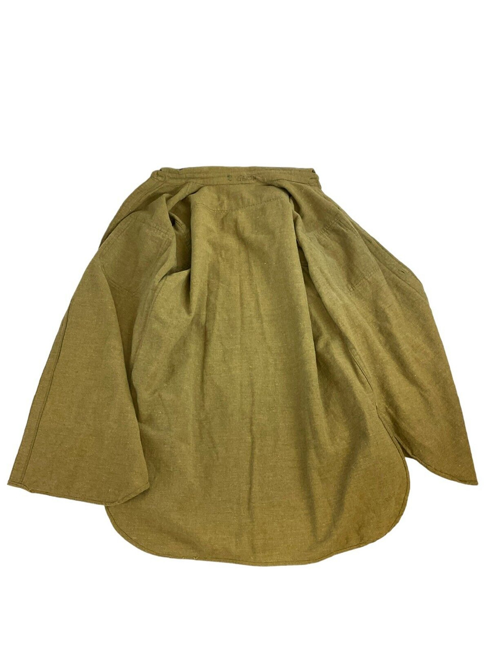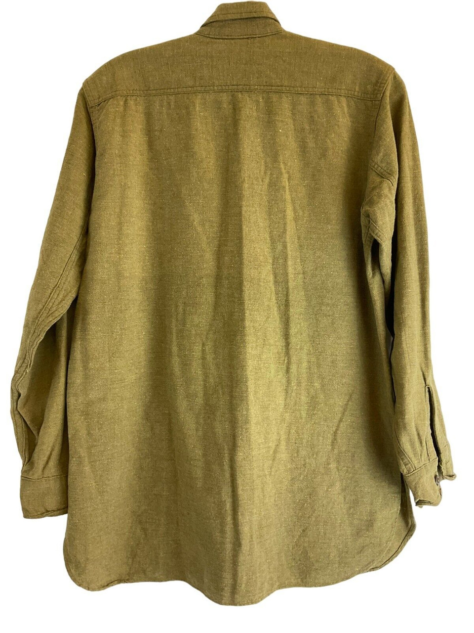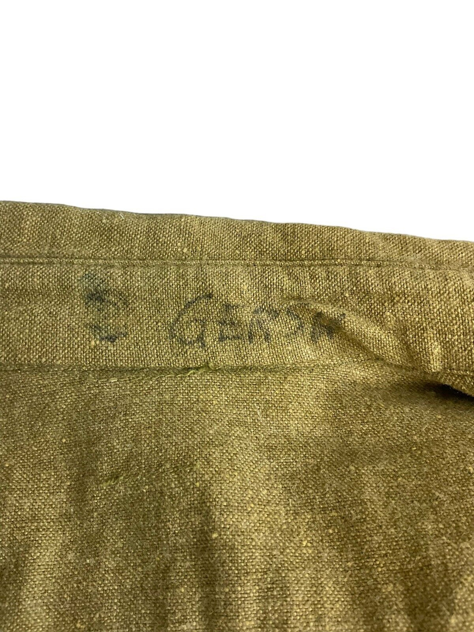 This authentic World War II Canadian Army wool dress shirt is a remarkable piece of military history. Featuring the distinctive “C” broad arrow mark, it signifies its official issue to the Canadian forces. Expertly crafted from durable and warm wool, this shirt provides an excellent example of the high-quality, functional military apparel worn by soldiers during the era. Personal and unique, it bears the name of its former owner, adding a touch of historical authenticity and personal connection to Canada’s wartime past. Whether you’re a collector of militaria, a history enthusiast, or looking for a unique period-specific piece, this named WW2 Canadian Army dress shirt represents a tangible link to the sacrifices and stories of those who served. Its condition and provenance offer a glimpse into the daily lives of soldiers, making it a cherished artifact for any serious collection.