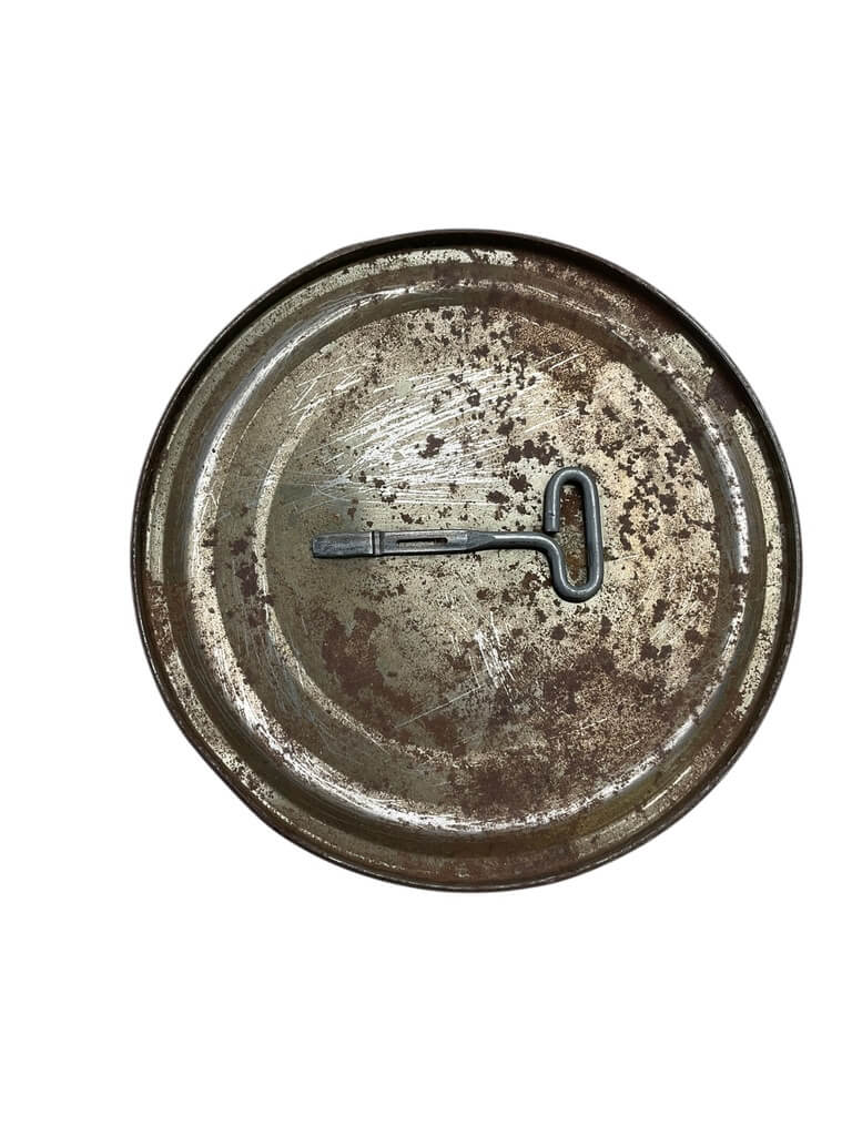 This rare artifact is a WW2 era tin of Kilm powdered whole milk, produced by the Borden Company. It holds significant historical value as it was specifically manufactured for Canadian and British prisoners of war (POWs). The tin is not only intact but remarkably, still holds its original contents. The Borden Company, a renowned American producer of dairy and pasta products, had produced these tins to supply POW camps. The compact, easy-to-store nature of powdered milk made it an ideal food source during the war. This particular tin is a testament to the resilience and resourcefulness during such a traumatic period. It is a unique collectible item that would serve as a poignant addition to any World War II memorabilia collection.