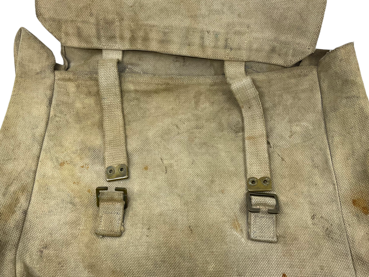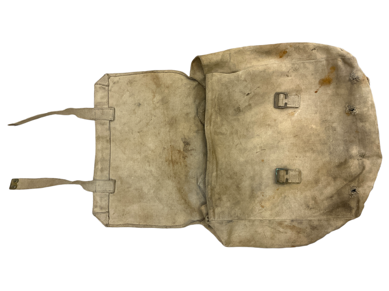 The “WW2 Canadian British RCAF RAF P37 Web Large Pack” is a rare and authentic military collectible from World War II, intricately tied to the historical legacy of the Royal Canadian Air Force (RCAF) and the Royal Air Force (RAF). This durable pack, made from the P37 webbing material, was an essential part of the gear for both Canadian and British servicemen. The large pack features robust construction suitable for carrying significant loads, indicative of its use in rigorous military operations. Despite its age, it retains traces of the original blue hue in less worn areas, reflecting its historical authenticity and the meticulous craftsmanship of the period. This pack is an invaluable piece for collectors and historians alike, providing a tangible connection to the valiant efforts of the RCAF and RAF during the tumultuous years of World War II.
