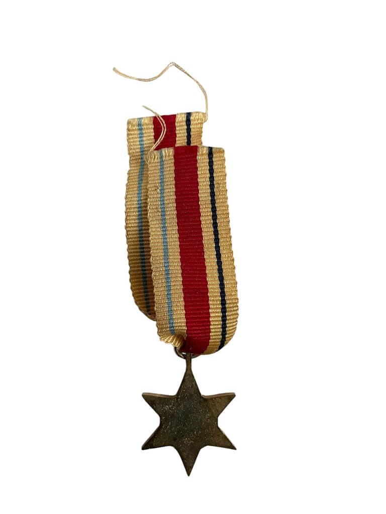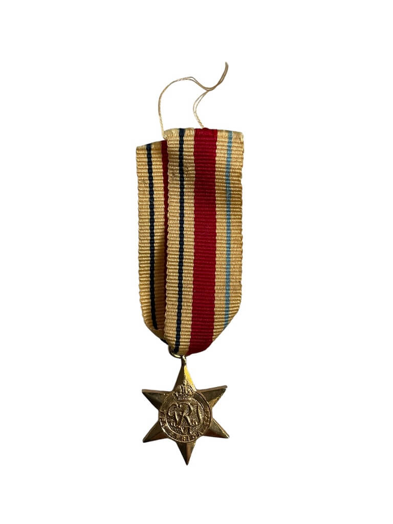 The ‘WW2 Canadian British The Africa Star Miniature Medal’ is a prestigious commemorative award that pays tribute to the valiant efforts of Canadian and British military personnel during the Second World War. This miniature medal was specifically designed to honor those who served in the North African Campaign between 10th June 1940 and 12th May 1943. The medal’s unique design features a six-pointed star, which is symbolic of the Star of Africa, coupled with a ribbon that bears the colors of the Union Jack and the Royal Navy, Army, and Air Force. Crafted with meticulous attention to detail, this miniature medal serves as a poignant reminder of the courage and dedication of those who contributed to a significant chapter in world history. This exceptional piece is an essential acquisition for collectors and military enthusiasts alike.