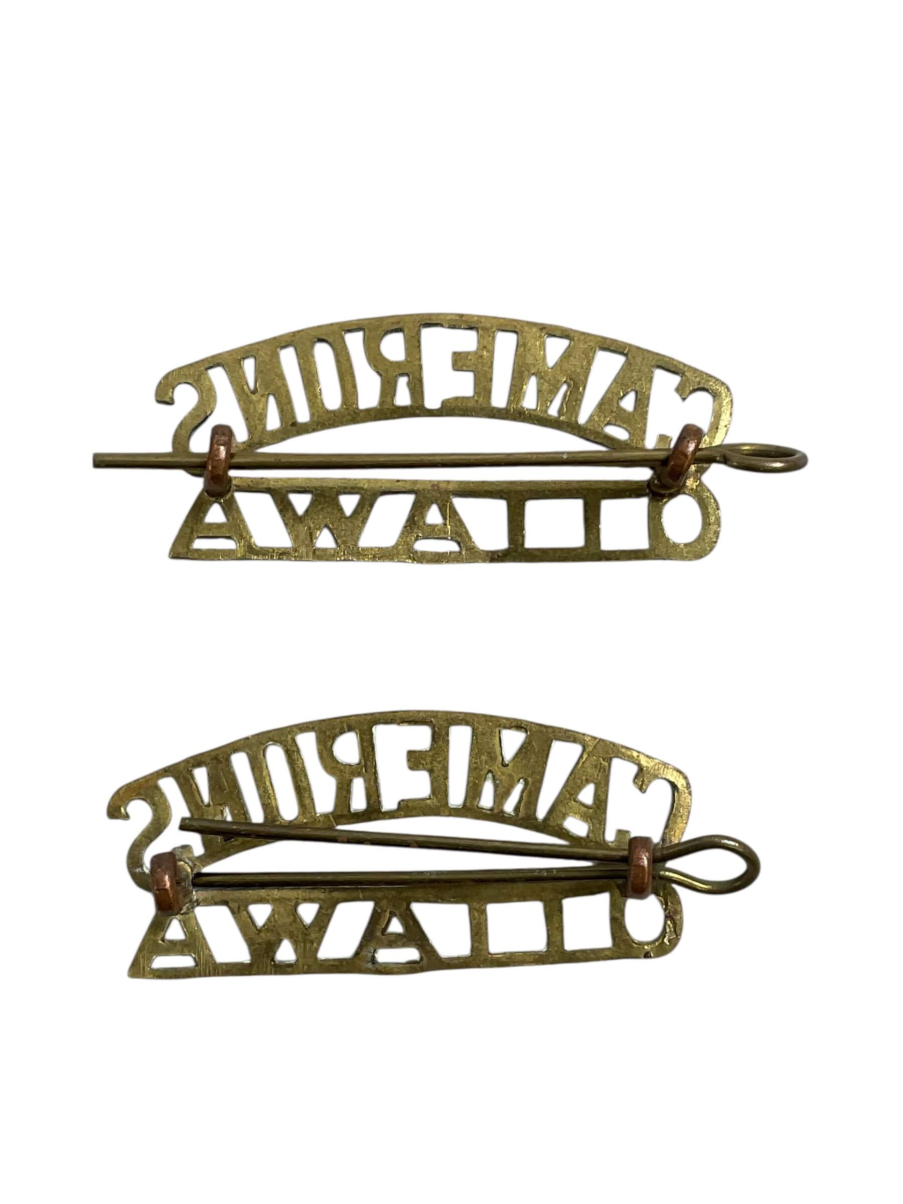 WW2 Canadian Camerons Higlanders of Ottawa Shoulder Titles Insignia Pair