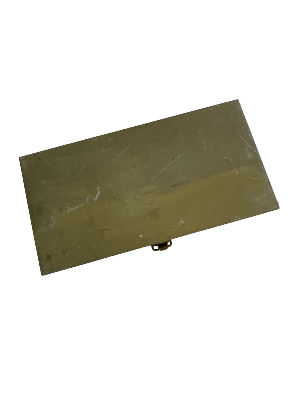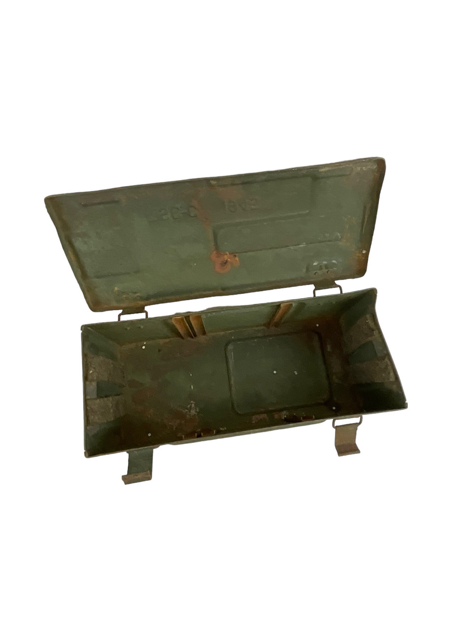 This vintage WWII-era ammo box is a unique piece of military history. Specifically designed for the Chinese contract with Canada, it was made to hold 7.92mm Bren gun magazines. Crafted with durability in mind, this ammunition box was originally produced to support the Chinese forces during World War II. Although it is now empty, it provides a vivid reminder of the era and the international cooperation that took place. The box features sturdy construction and authentic historical markings, making it a desirable collectible for military history enthusiasts and collectors. Its preserved condition showcases its authentic use in mid-20th-century warfare, offering a tangible connection to the past. Whether displayed as a historical artifact or added to a collection, this WW2 Canadian Chinese Contract Bren Gun Magazine Ammo Box stands as a testament to the significant role of Canadian support in the global conflict.