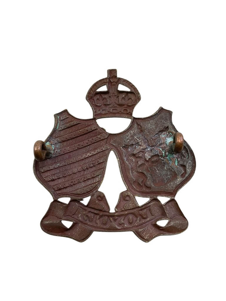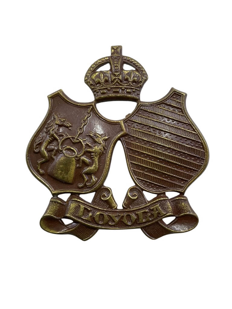 This item is a WW2 Canadian COTC (Canadian Officer Training Corps) Loyola College Cap Badge. Dating back to the Second World War, this badge is an emblem of Canada’s history and the significant role the country played during the war. Made of high-quality brass, the badge features the iconic Loyola College emblem, denoting its association with the renowned institution. The badge was worn by cadets during their training in the COTC, distinguishing them and their college. This piece not only embodies the courage and dedication of the Canadian forces during WW2, but also serves as a reminder of the educational institutions that contributed to the war efforts. For military enthusiasts, history buffs, or collectors of war memorabilia, this badge is a valuable and meaningful artifact.
