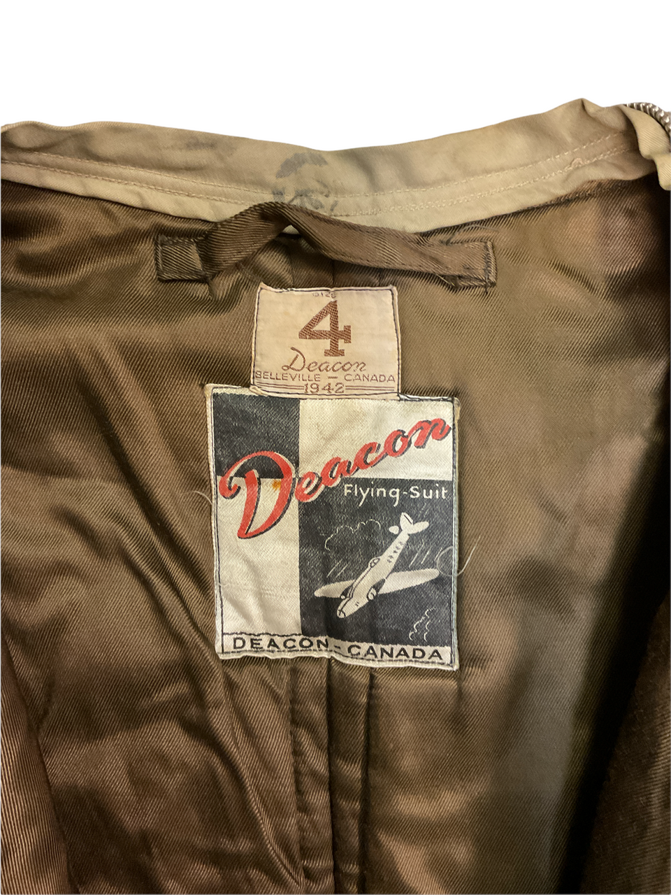 WW2 Canadian Deacon Flying Suit Liner Size 4 Large, main zipper working, one tooth missing