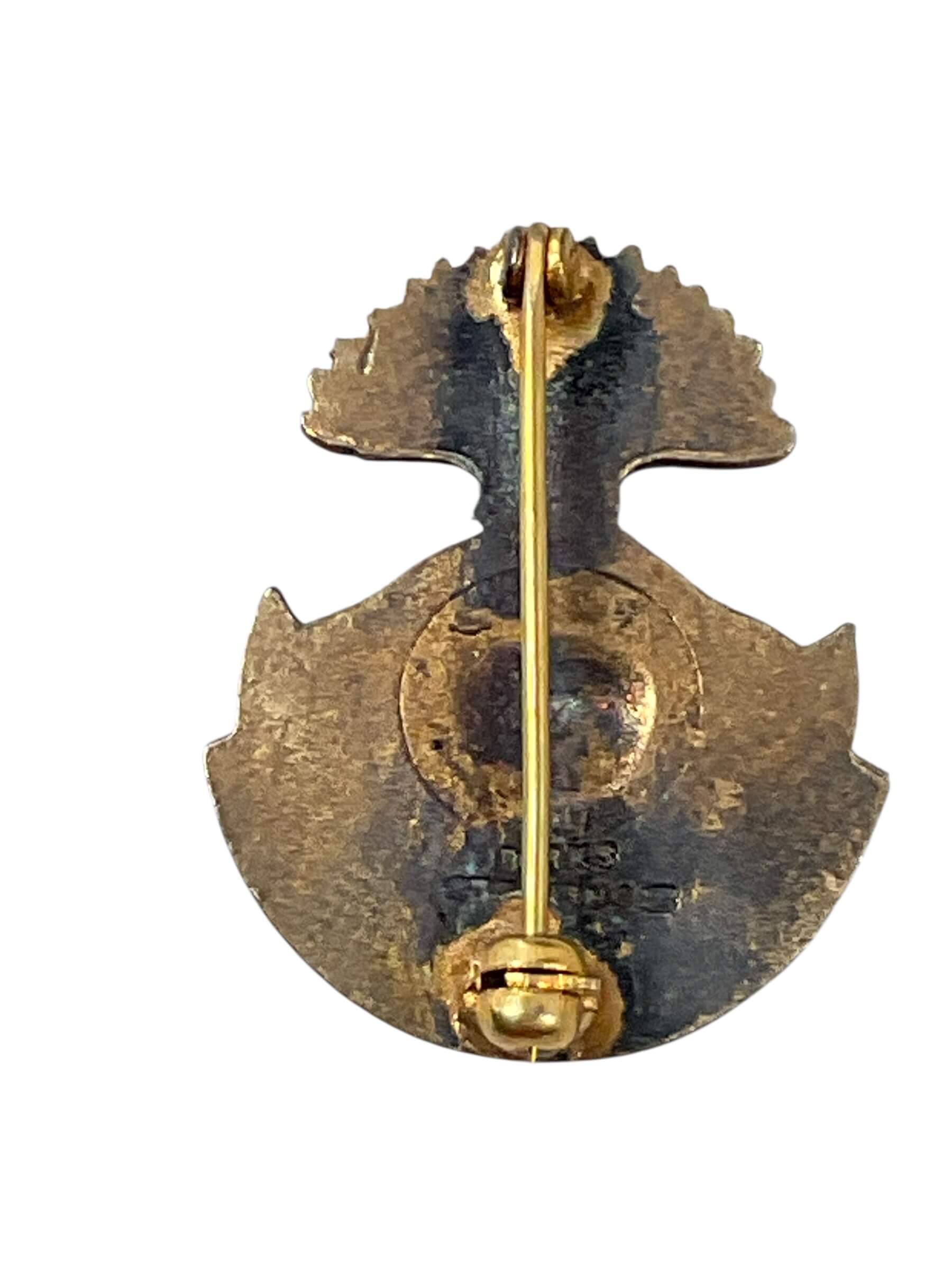 The WW2 Canadian Edmonton Fusiliers Sweetheart Badge is a period artifact, intended as a token of affection presented to relatives or loved ones of regimental members. Crafted by Birks, a well-known Canadian jeweller, the badge is made from sterling silver, as indicated by the hallmarks on the reverse. The badge features the design associated with the Edmonton Fusiliers, a Canadian infantry regiment active during the Second World War, including the regimental insignia and relevant emblems. Sweetheart badges were commonly produced during the First and Second World Wars as a form of personal memento, reflecting the service and connection of a soldier to their family. This particular example measures approximately 28 mm in diameter and includes the original fastener on the reverse. Collectors of Canadian military memorabilia and insignia will note the craftsmanship associated with Birks and the historical significance linked to the Edmonton Fusiliers during WWII.