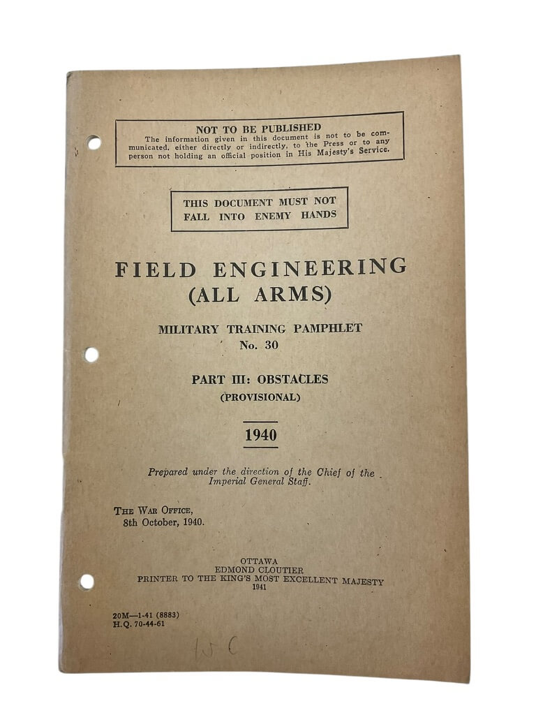 WW2 Canadian Field Engineering All Arms Military Training Pamphlet No 30 Part 3 Obstacles 1940 Used Softcover Reference Manual