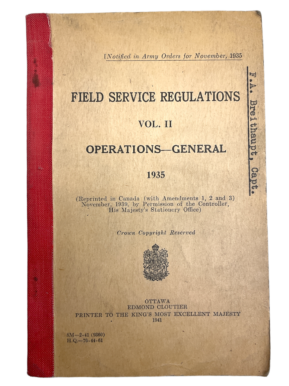 WW2 Canadian Field Service Regulations Vol 2 Operations 1935 SC Reference Book
