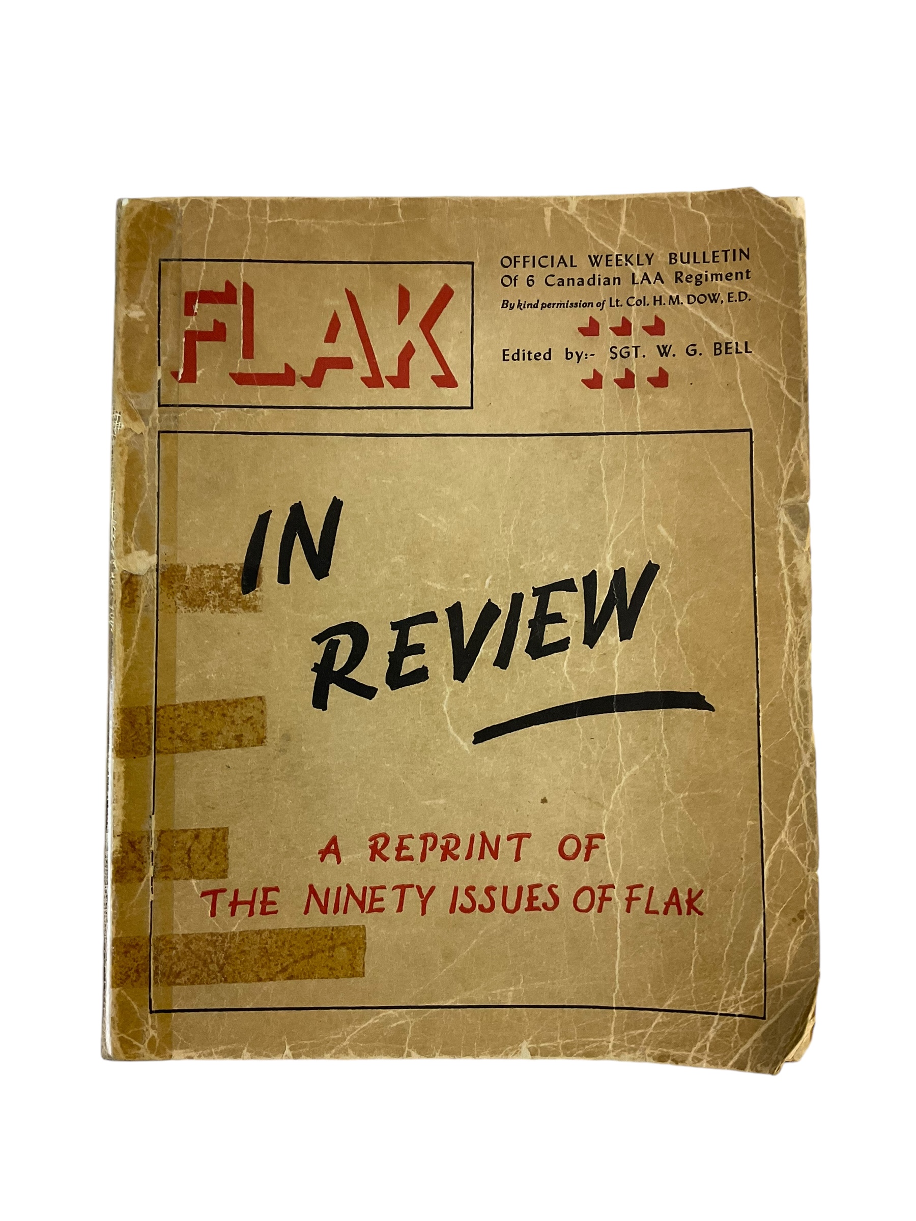 A used soft cover WW2 Canadian Flak In Review Weekly Bulletin Of 6 LAA Regiment Reference Book. Approx 2 inches thick, with lots of information and pictures. Great for reference. I ship all over the world. GST of 5% is applicable on all sales within Canada.