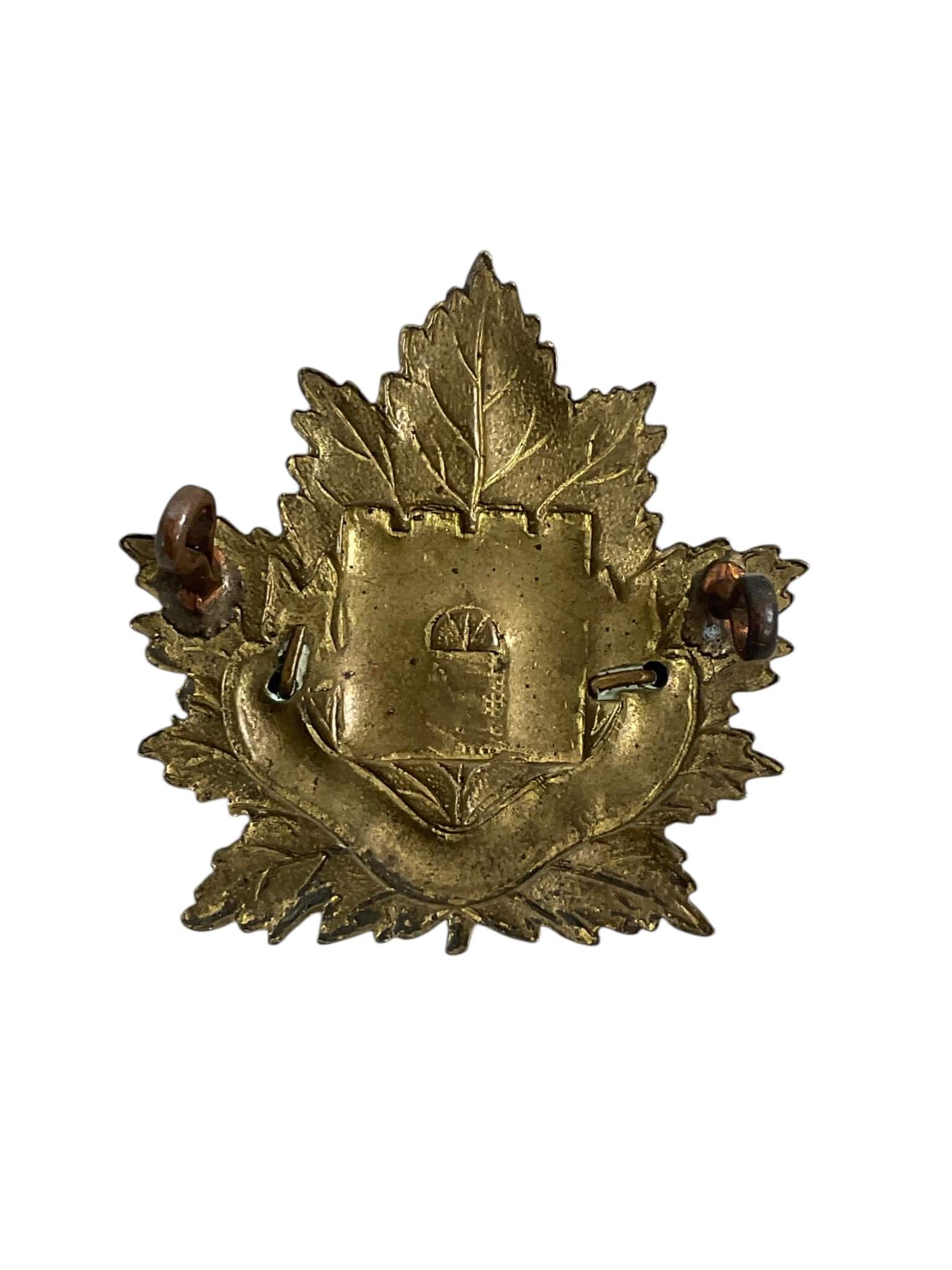 The WW2 Canadian Fort Garry Horse Cap Badge is a military insignia worn by members of the Fort Garry Horse, an armoured regiment of the Canadian Army. Established in 1912, the regiment served as an armoured unit during the Second World War, notably participating in campaigns across Northwest Europe. The badge typically features a crown above a scroll inscribed with the regiment’s name and a central representation of a horse’s head, symbolizing the unit’s cavalry origins. Manufactured primarily in brass during the war period, these badges were affixed to the service dress cap as standard identification. The design reflects the historical lineage and traditions of the regiment, which was part of the Canadian Armoured Corps. Badge details, such as the quality of casting, lugs, and maker’s marks, may vary depending on the issuing contract and manufacturer. The item provides insight into Canadian military heraldry and the distinctive regimental identity within the Army during World War II.